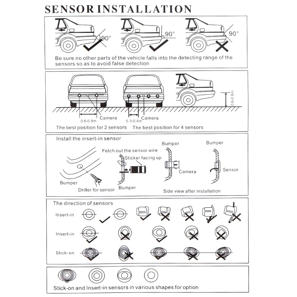 – Start to reverse your car, the backup sensor will start to work, and two side of front sensor will start to work at the same time, just avoid damage to front side.
