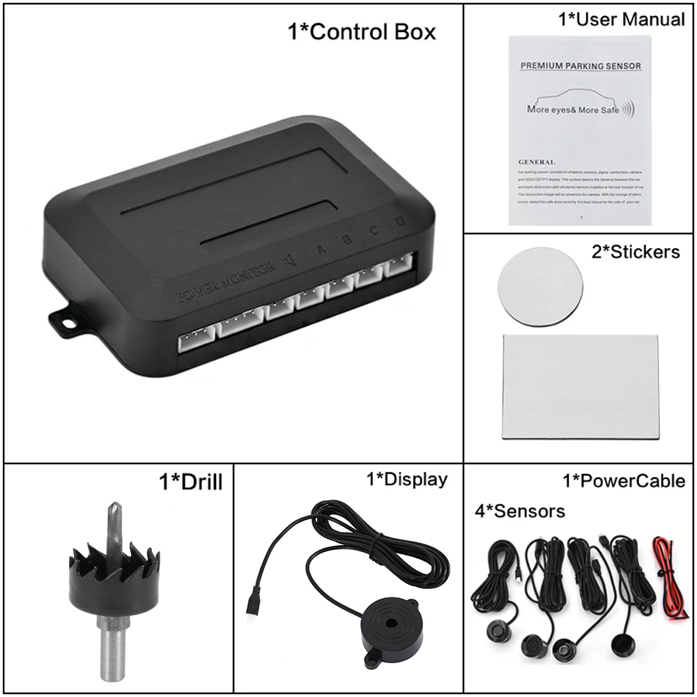 Car Parking Sensor with 4 Sensors Buzzer 22mm Kit Reverse Backup Radar Sound Alert Indicator Probe System 12V