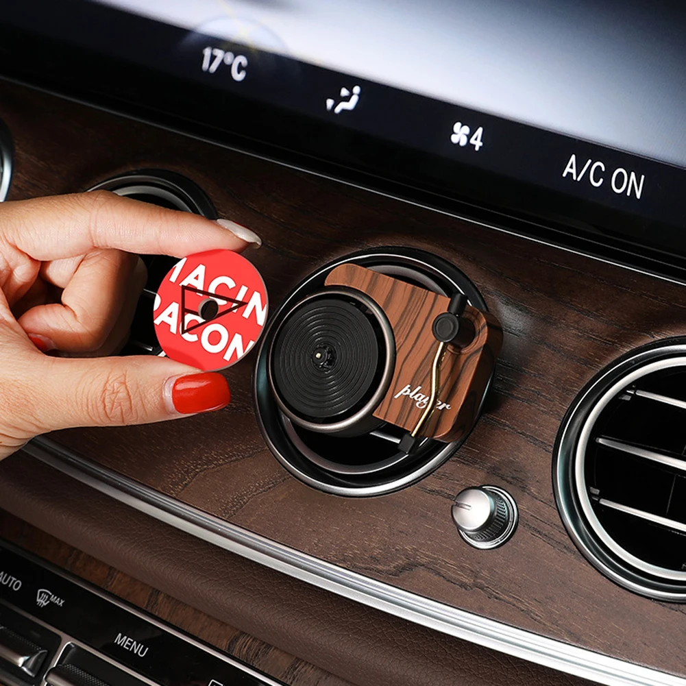 *1.Retro wood design, gold head, texture base, vinyl record, take you back to the record player era. High-quality parts do not fall during use, ensuring your driving safety.