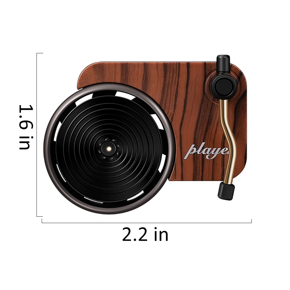 *4.The aromatherapy clip of the record player is only 2.2 × 2.1 × 1.6 inches (5.6 × 5.5 × 4 cm), small and cute. Weighing only 0.7 ounces (22 grams), the non-slip soft clip will not damage your car.