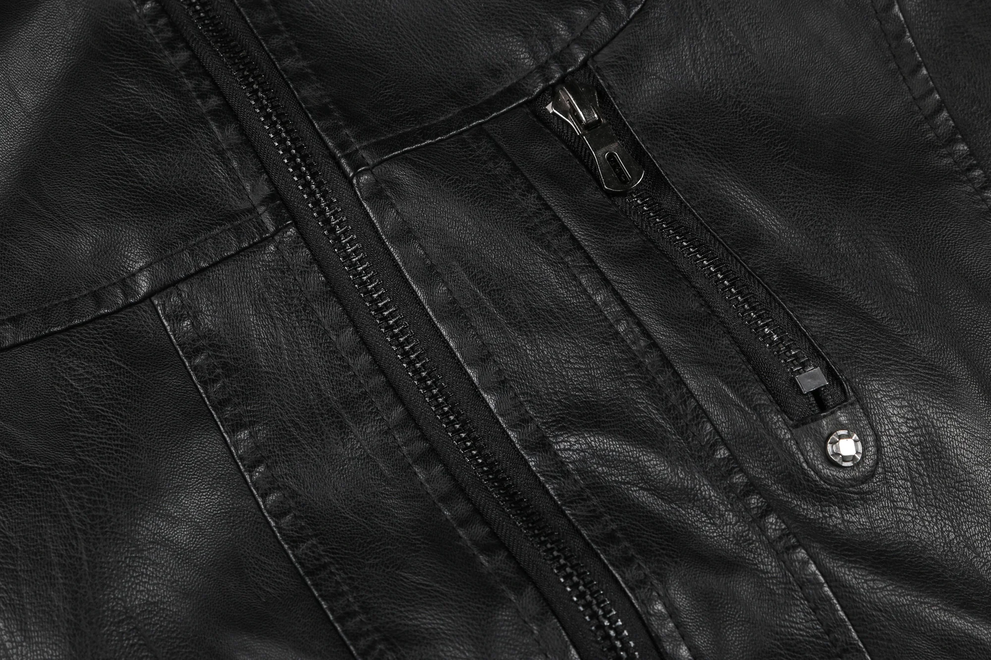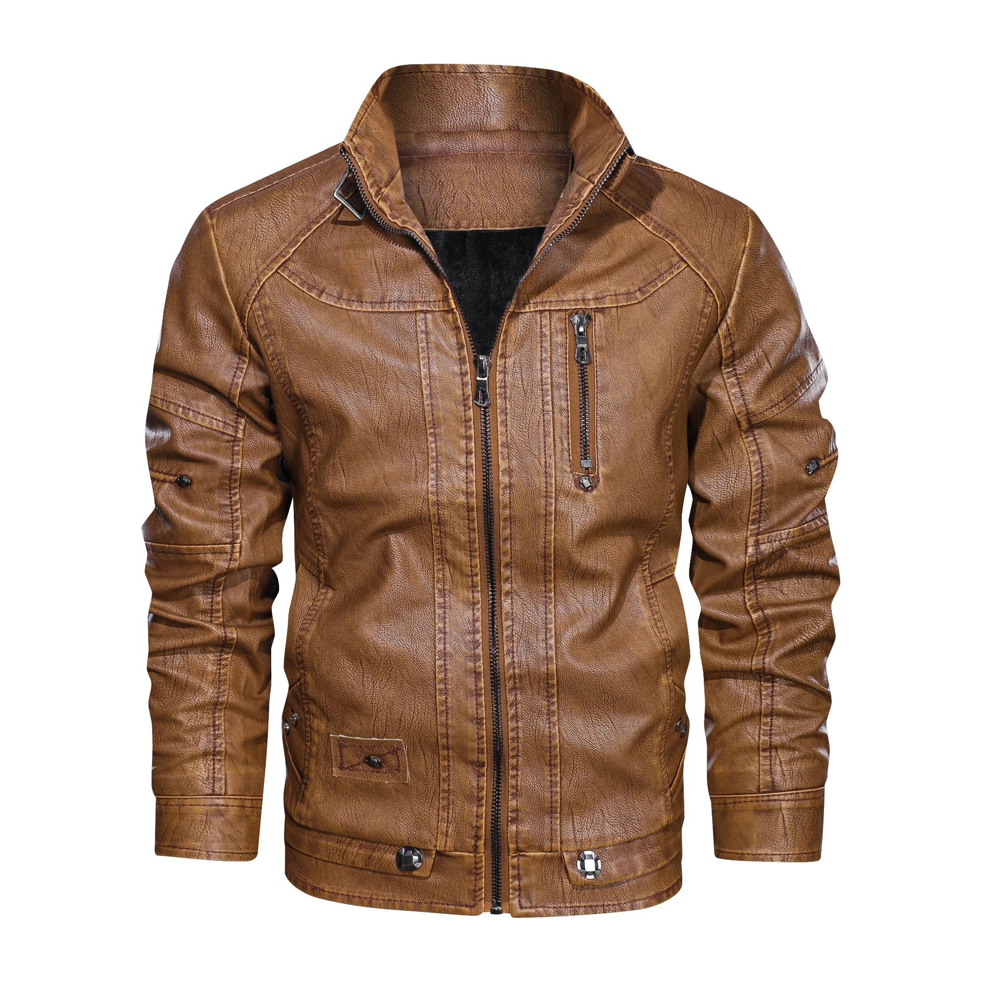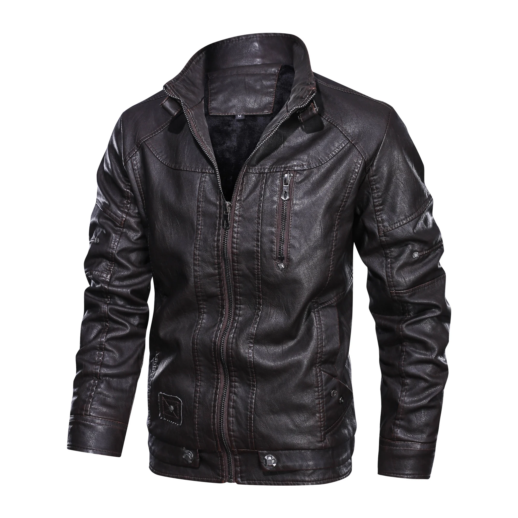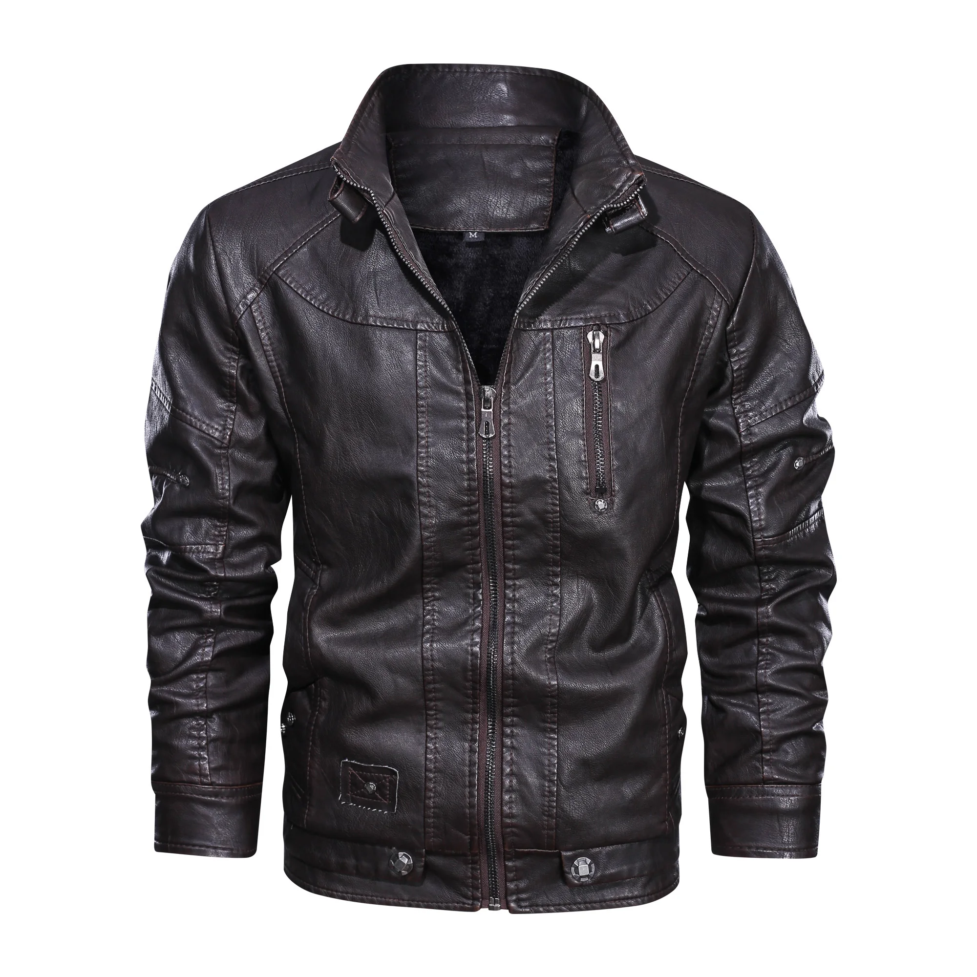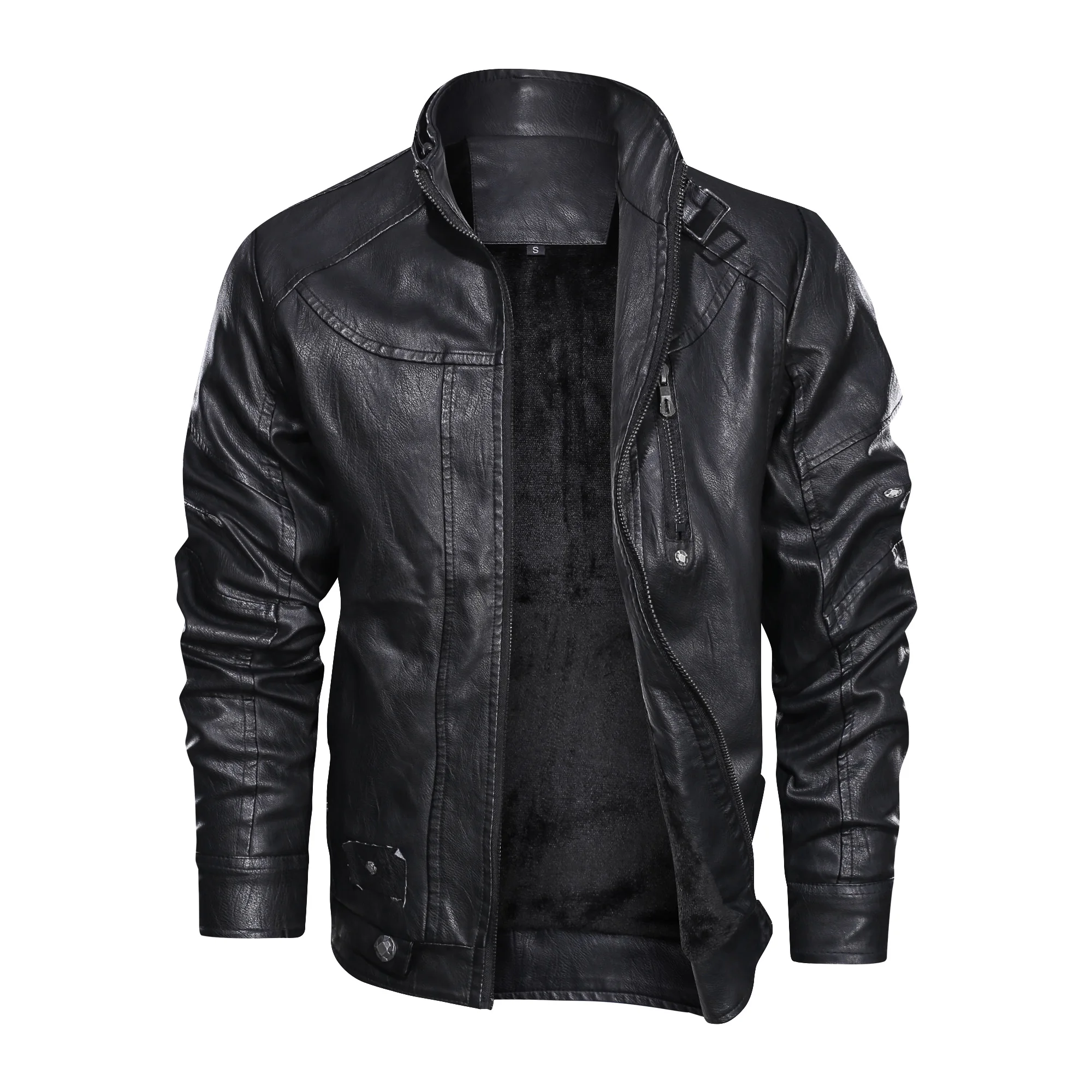 CARANFIER Fashion Winter Leather Jacket Men Stand Collar Motorcycle Washed Retro Velour Leather Jacket European Size Mens Coats