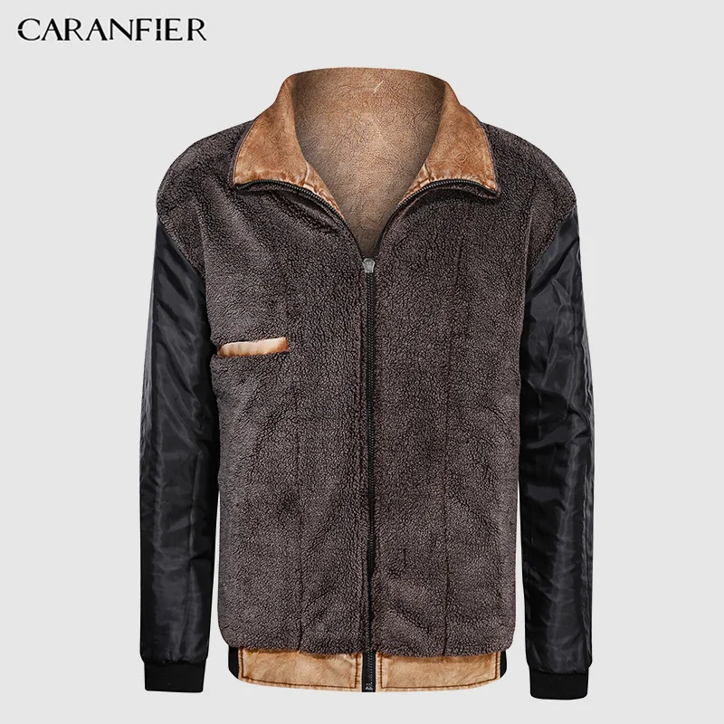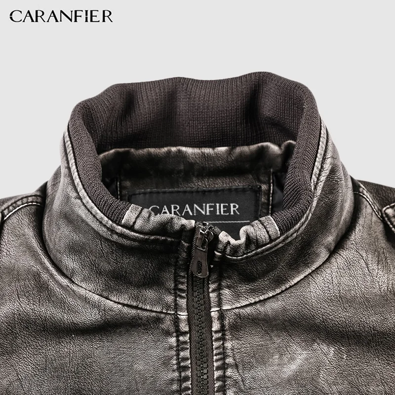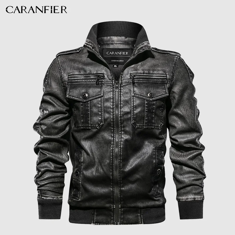 CARANFIER Mens Leather Jackets Motorcycle Stand Collar Zipper Pockets Male US Size PU Coats Biker Faux Leather Fashion Outerwear