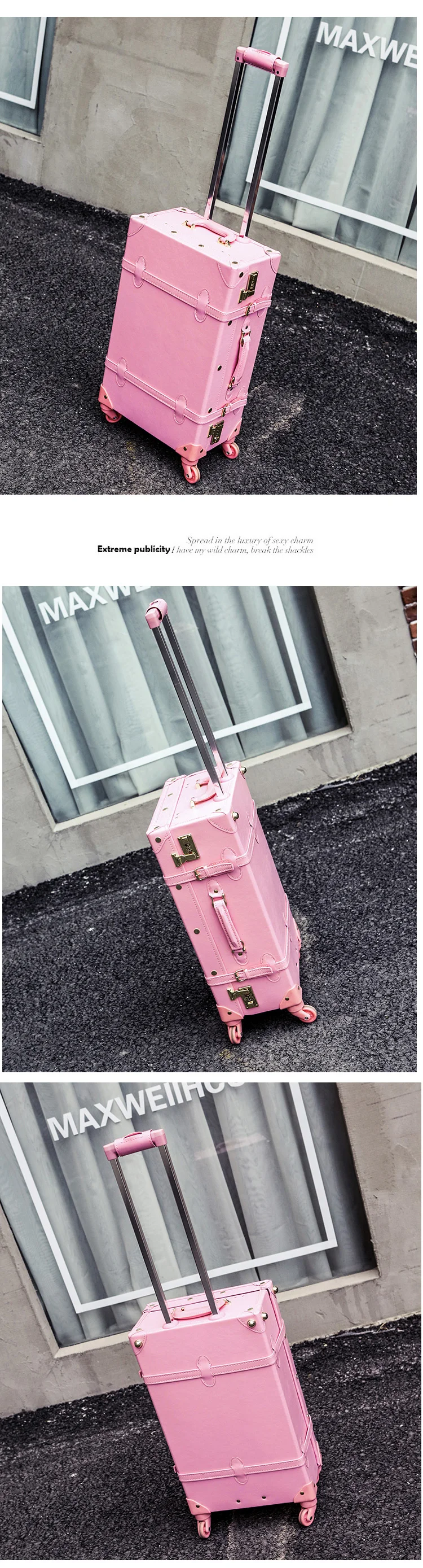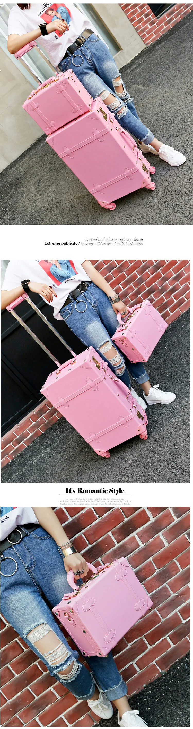 CARRYLOVE High quality girl PU leather trolley luggage bag set,lovely full pink vintage suitcase for female,retro luggage gift
