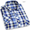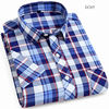 Checkered shirts for men Summer short sleeved leisure slim fit Plaid Shirt square collar soft causal male tops with front pocket