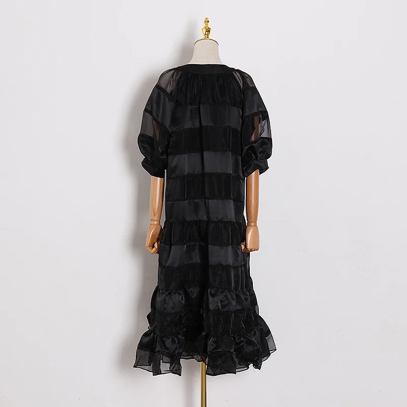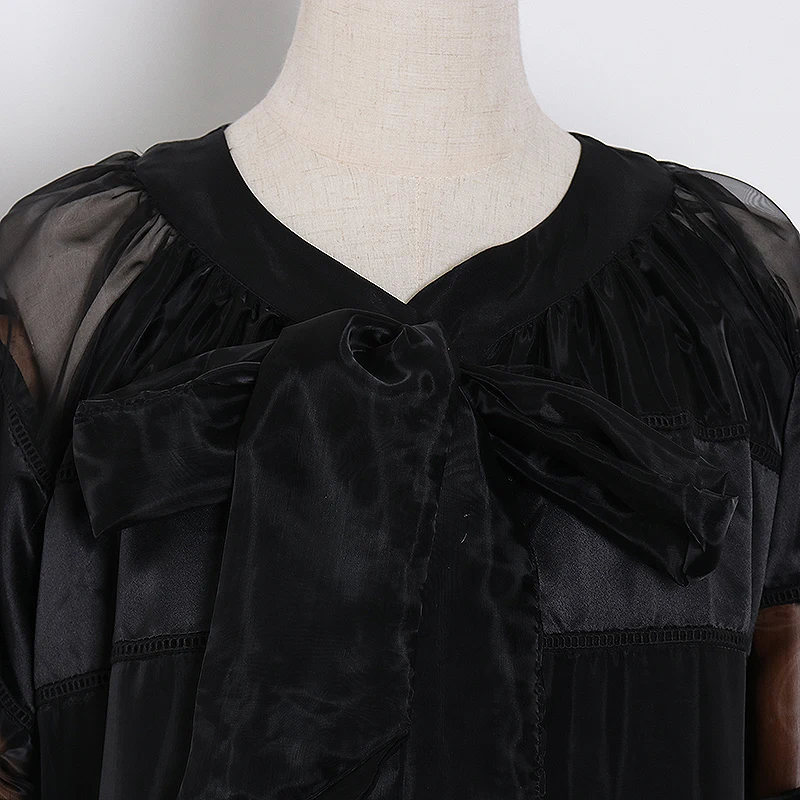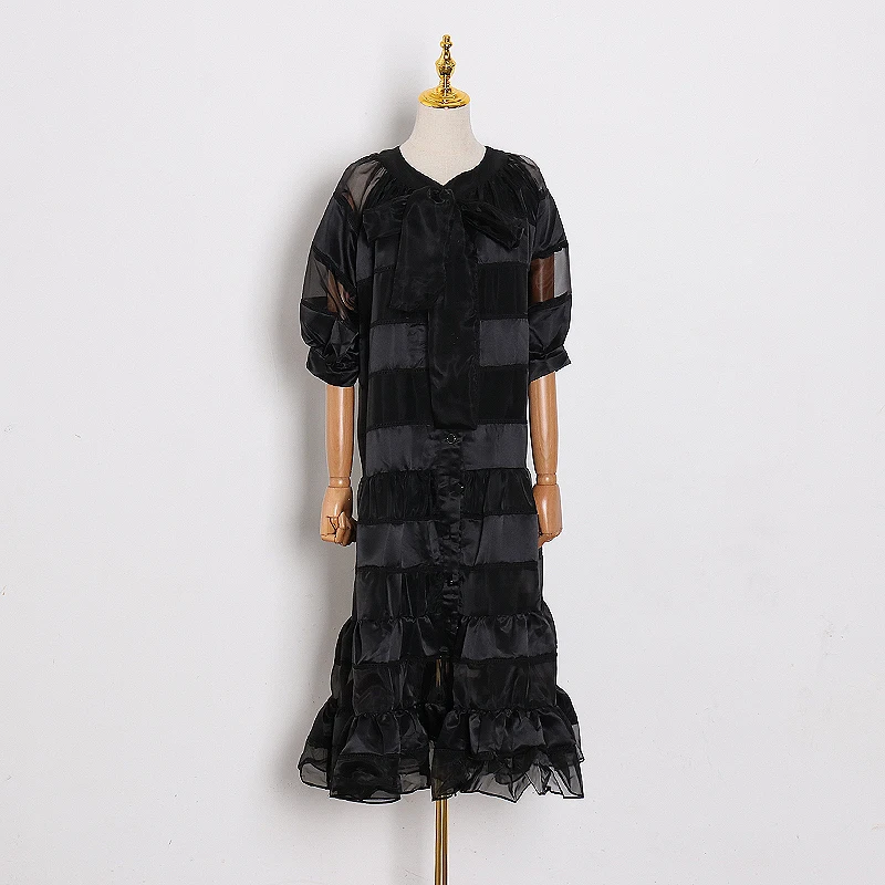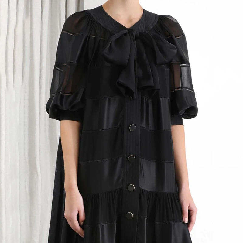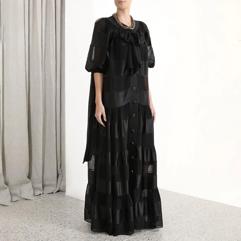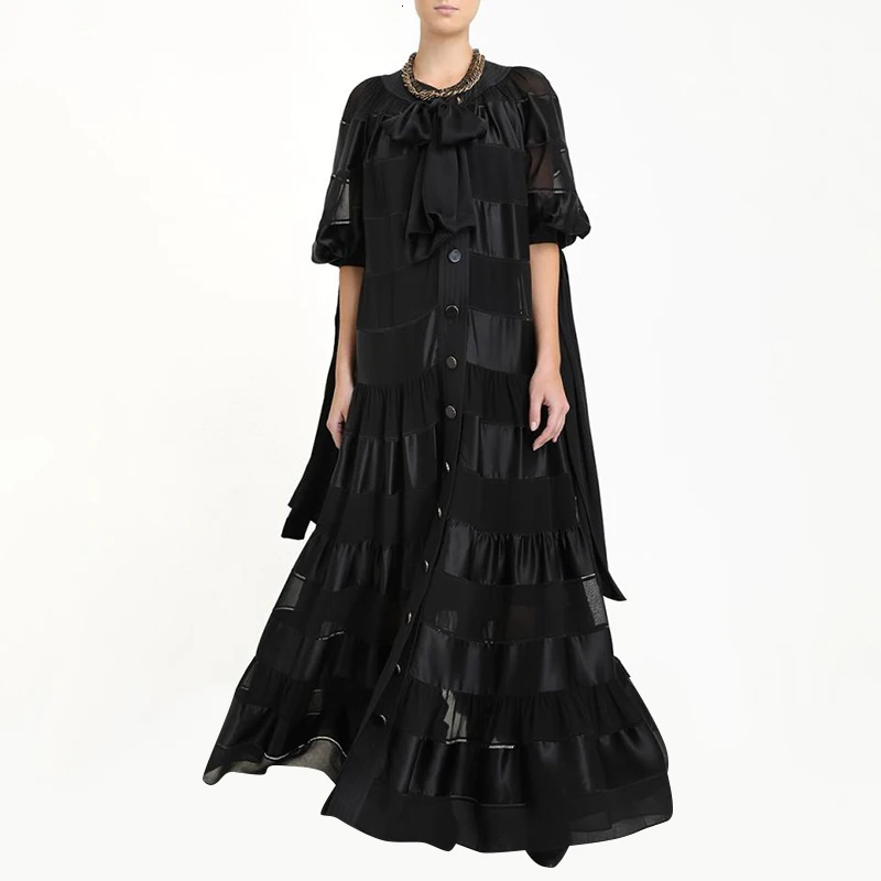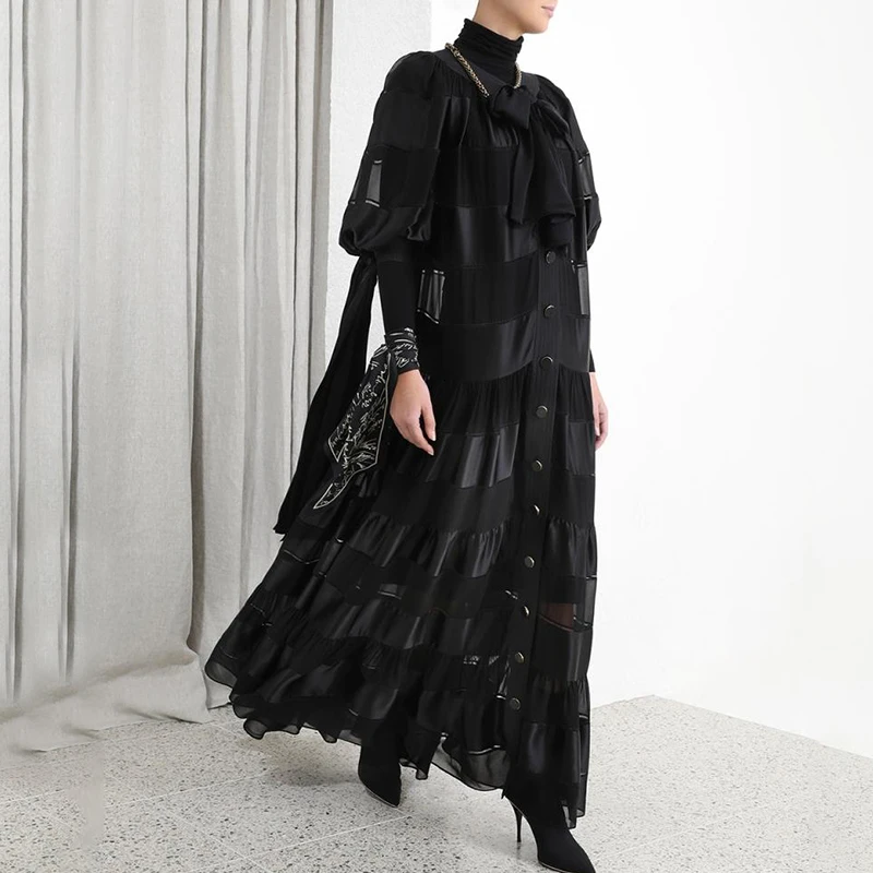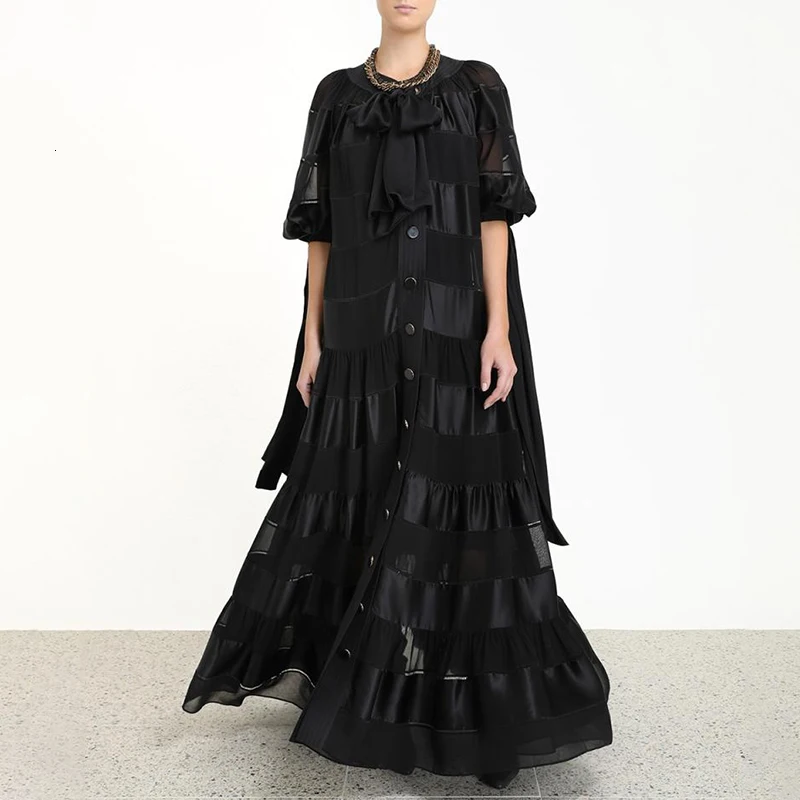CHICEVER Lace Up Bowknot Dress Women O Neck Half Sleeve High Waist Large Size Maxi Dresses Female Autumn Fashion Clothes 2020