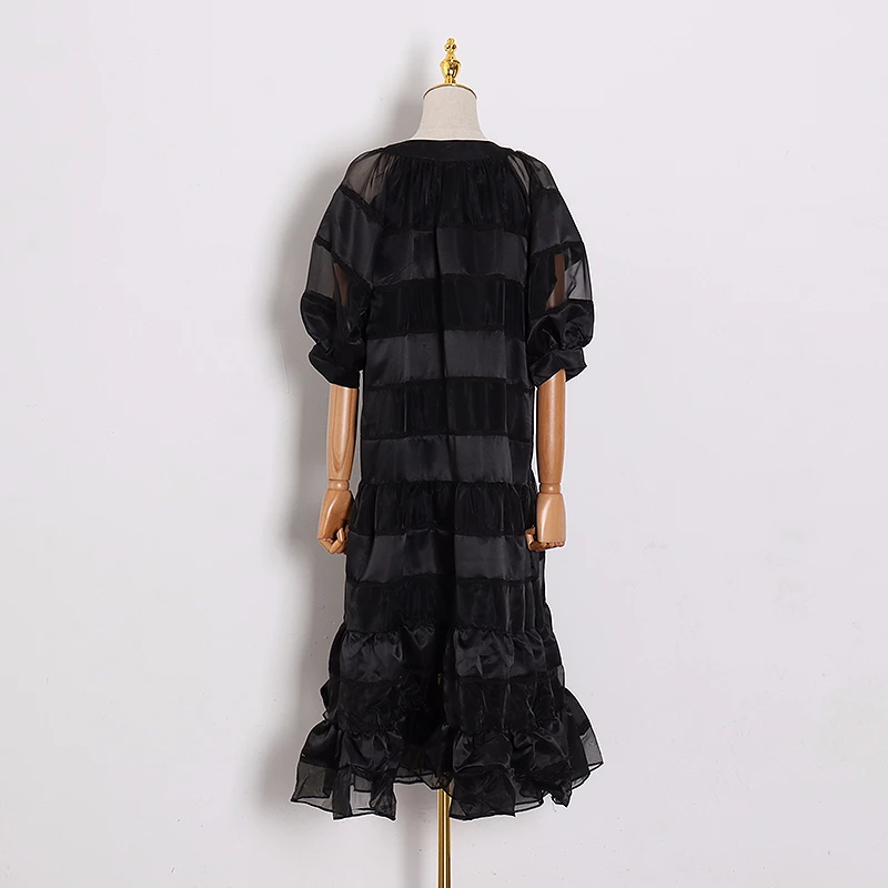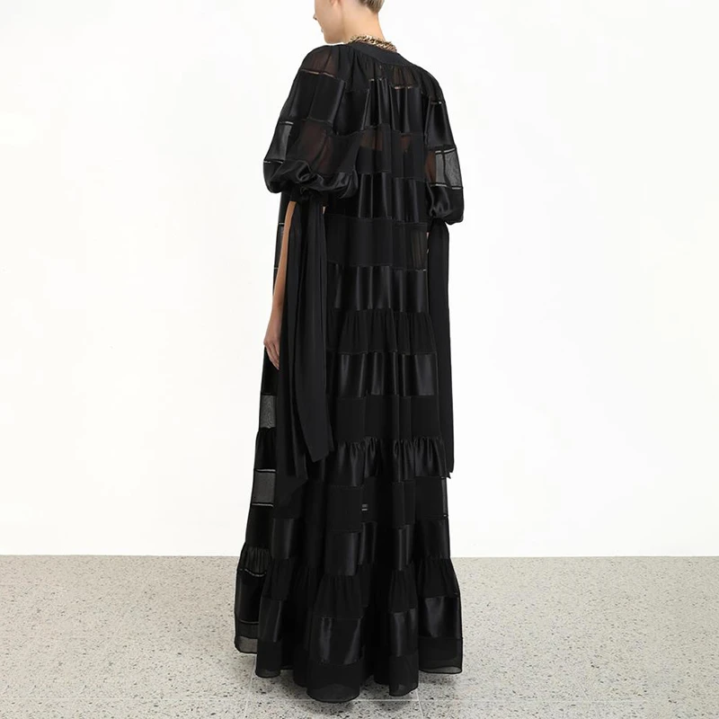 CHICEVER Lace Up Bowknot Dress Women O Neck Half Sleeve High Waist Large Size Maxi Dresses Female Autumn Fashion Clothes 2020