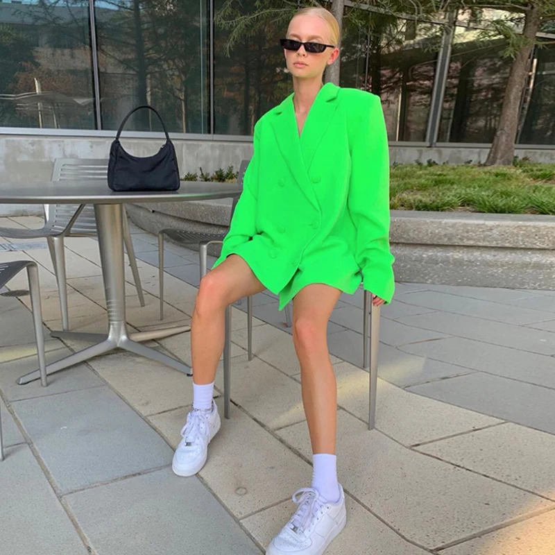 Chicology double breasted blazer long sleeve jacket women loose coat autumn winter female street wear over size plus clothes