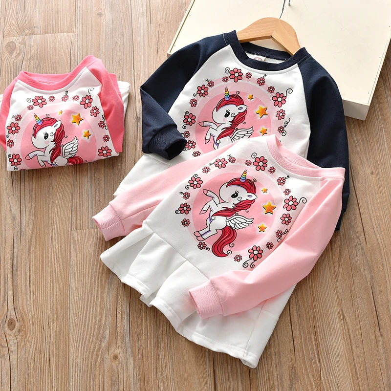Child clothing girls sweater coat 2020 spring autumn unicorn jacket Baby stitching long sleeve sweatshirt 2-6 Quality kids wear