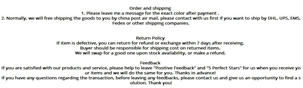 If for any reason you would like to exchange your product, perhaps for a different size in clothing. You must contact us first and we will guide you through the steps.