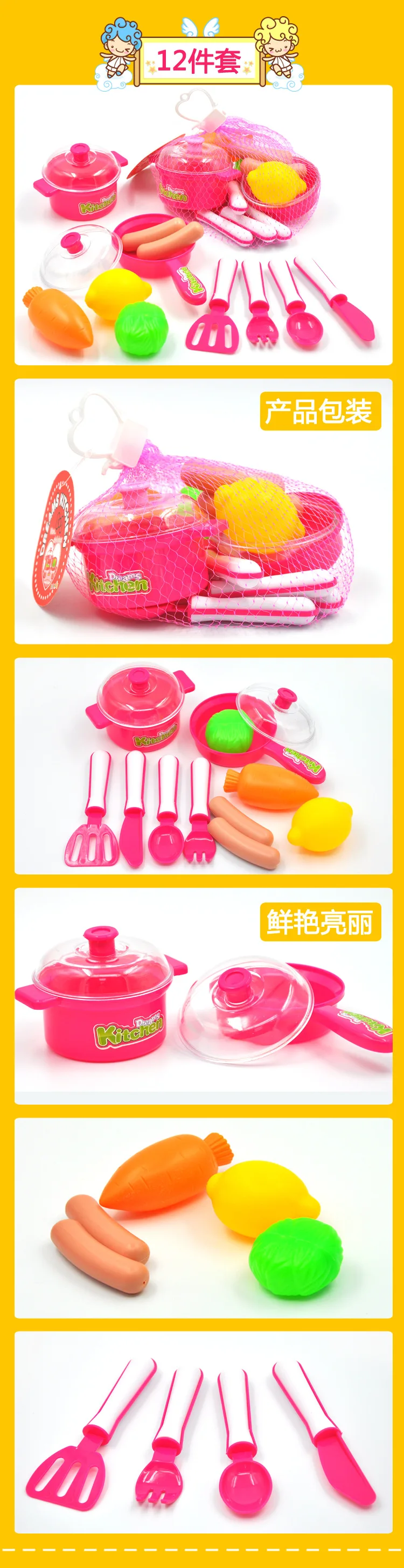 Children play house play set simulation tableware kettle cup fruit and vegetable puzzle early education toys