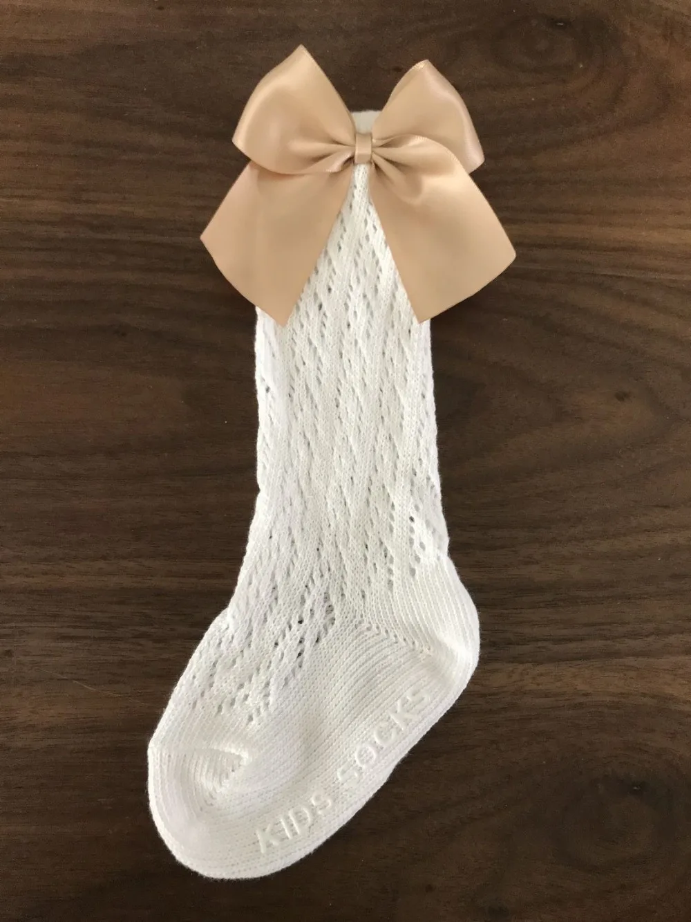 Children’s Girl’s Royal Style Candy Colors Bow Knee High Socks.Baby Toddler Bowknot In Tube Socks.Kid’s Hollow Out Sock Sox