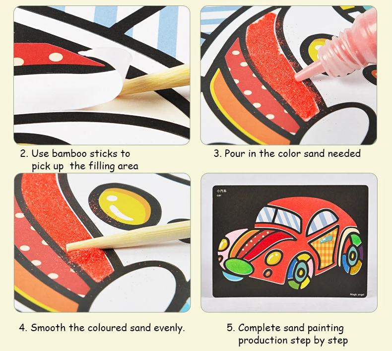 Colors: 18 color sands / 26 cartoon models, 18 color sands / 26 magic models, 24 color sands / 41 composite models