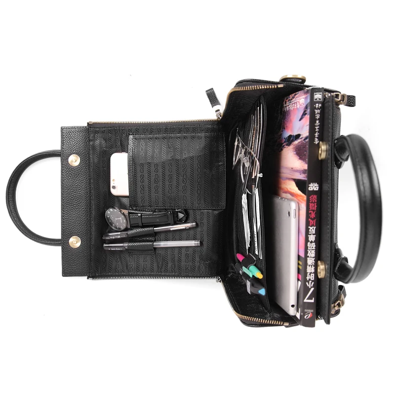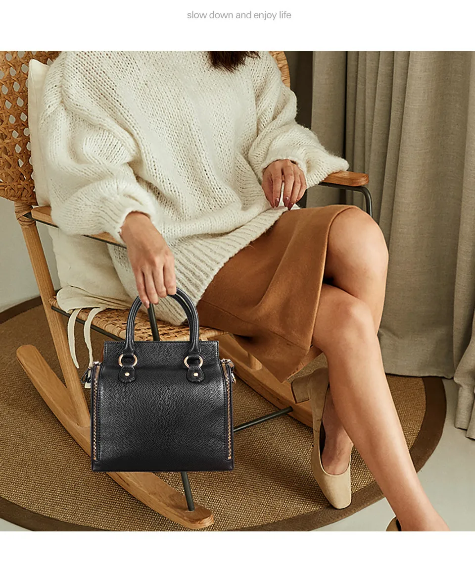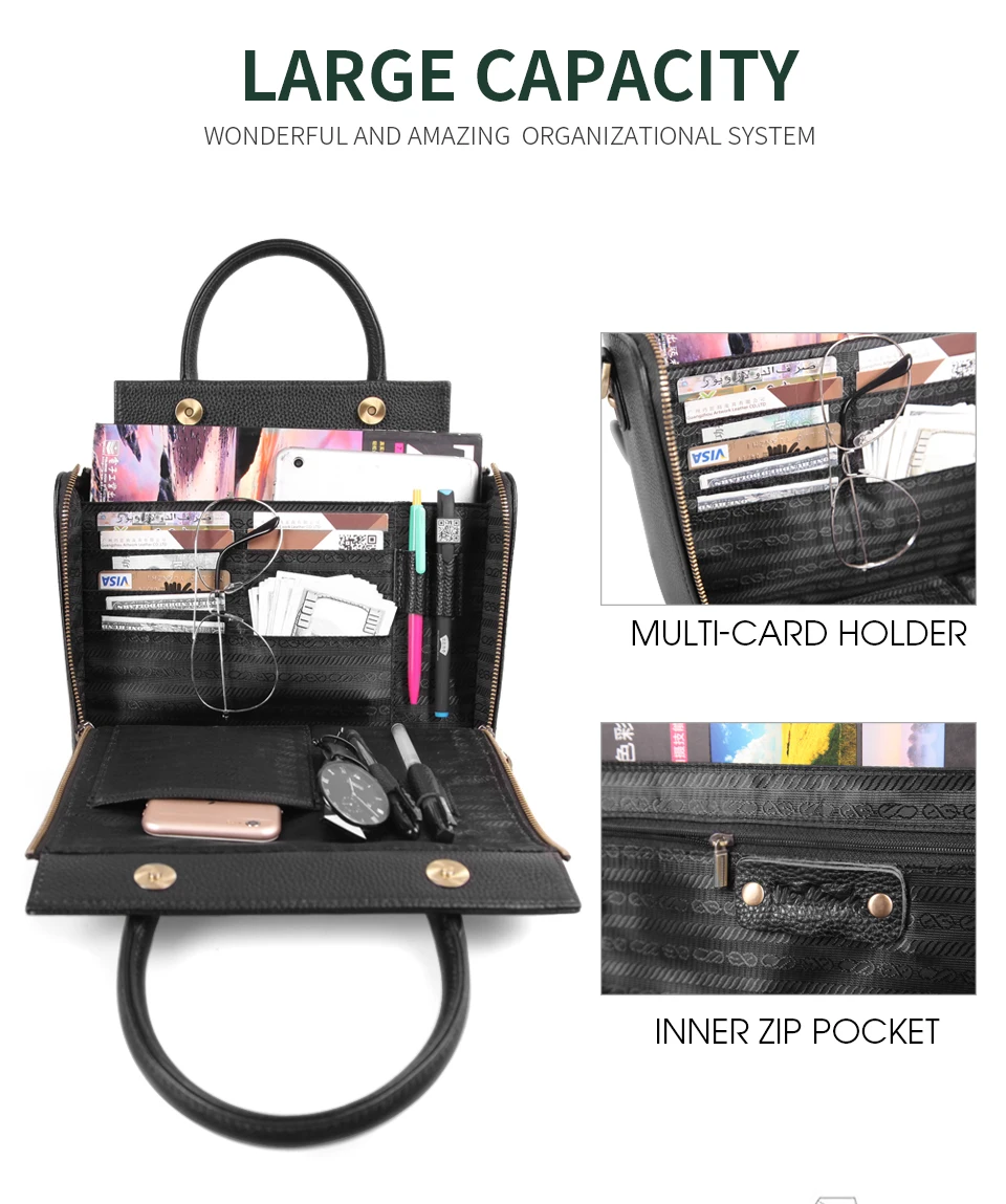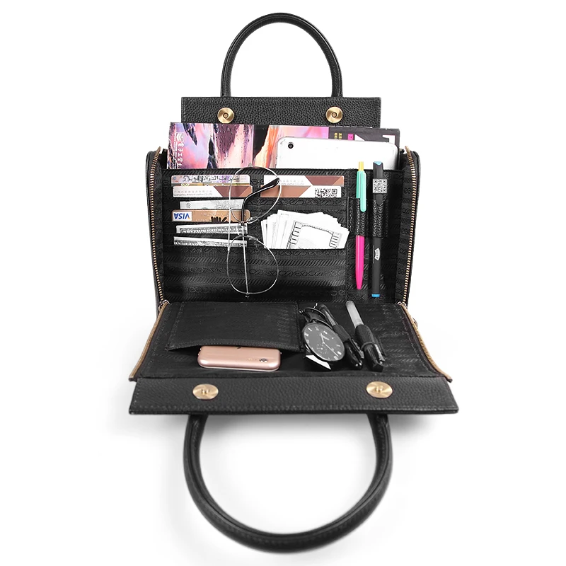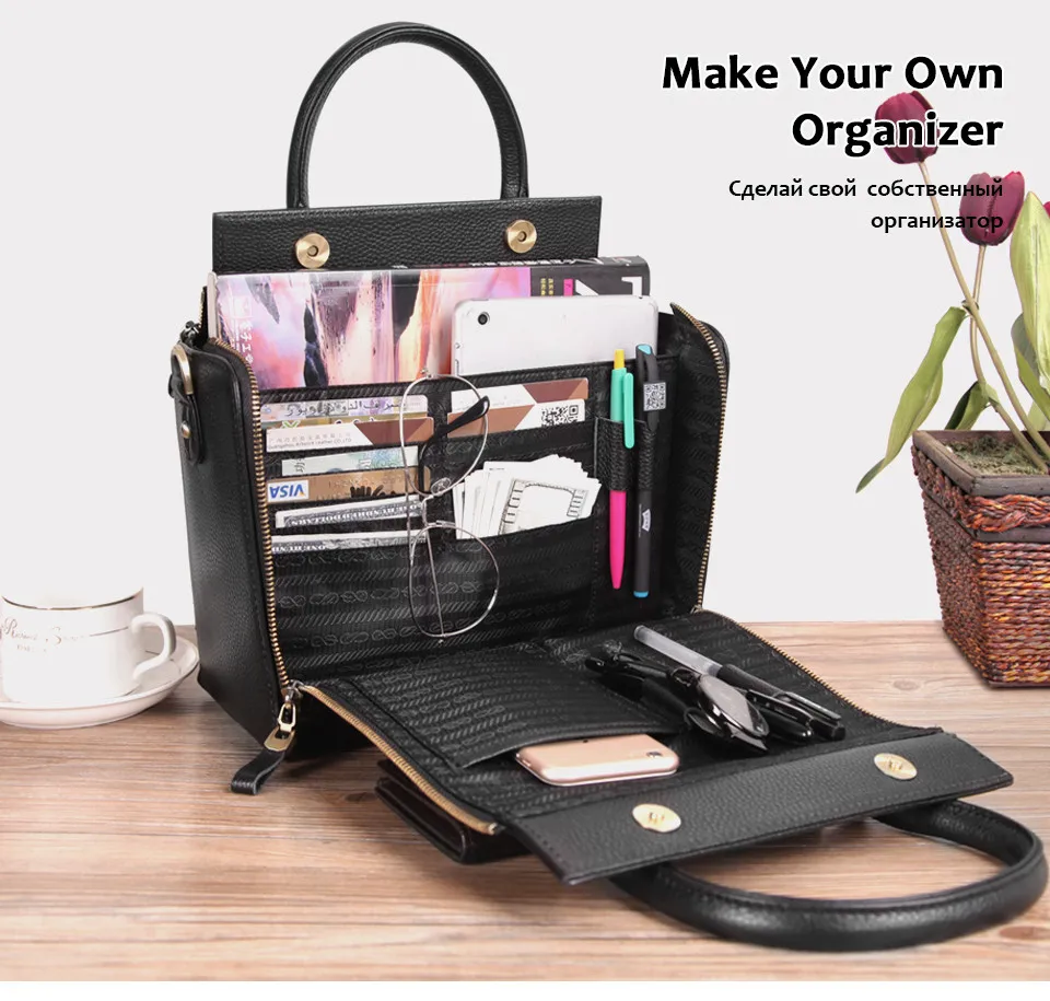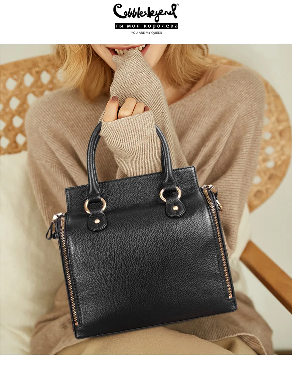 Cobbler Legend Super Organizer Handbag Genuine Leather Black Messenger Bag Designer Top Handle Bags Women Tote Soft Satchel