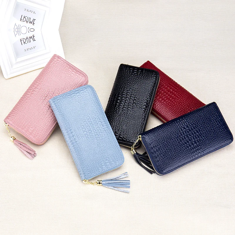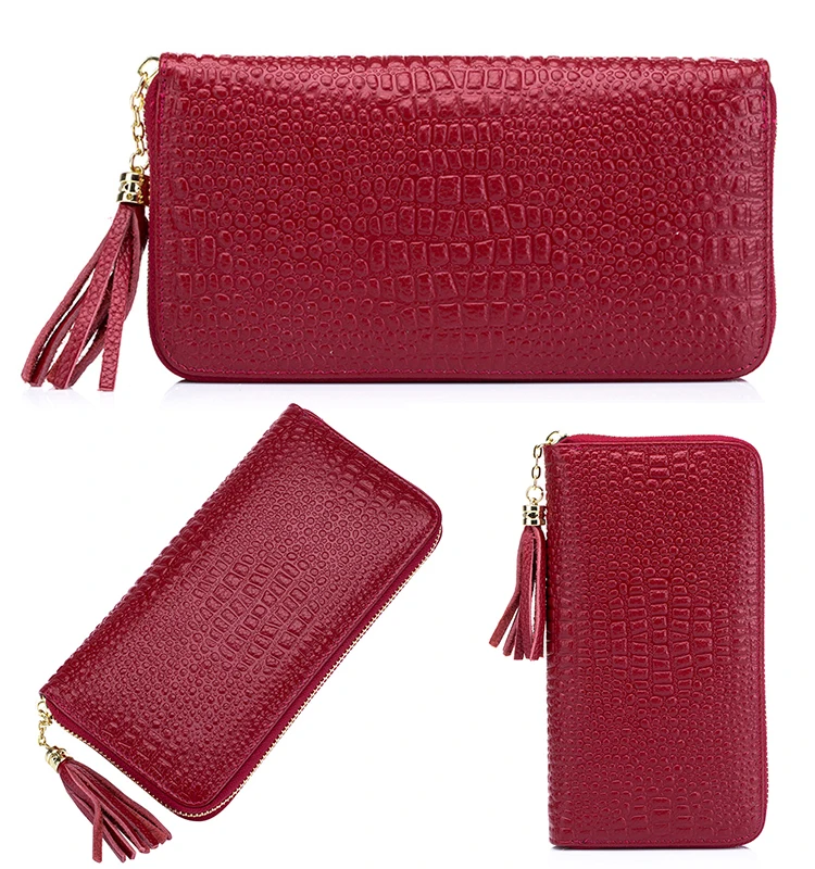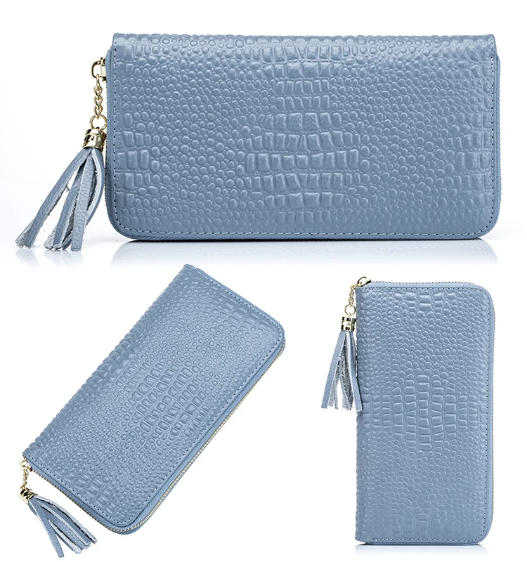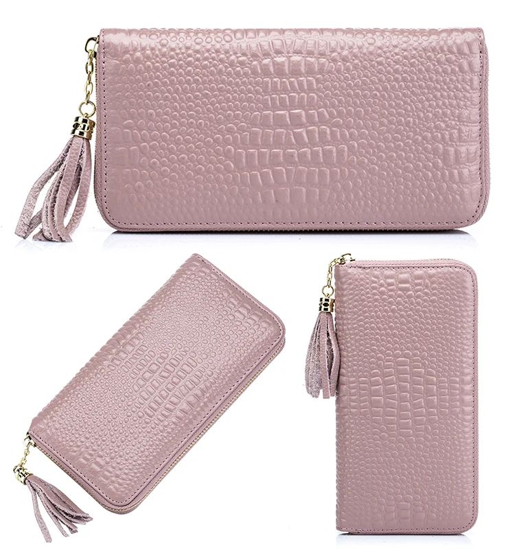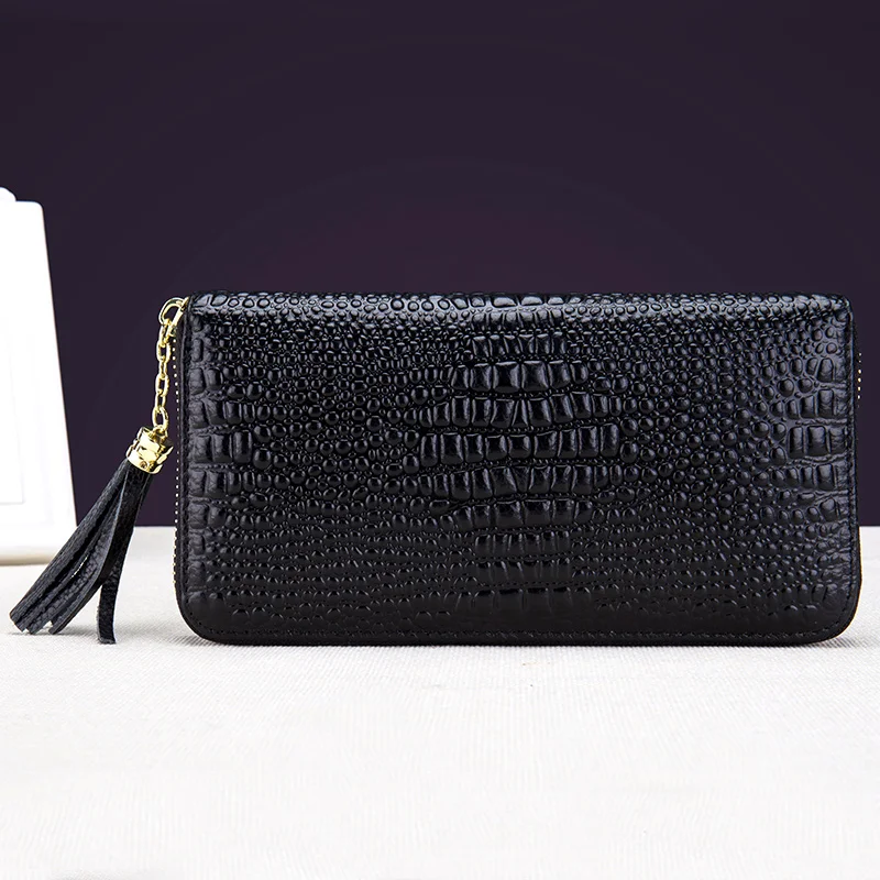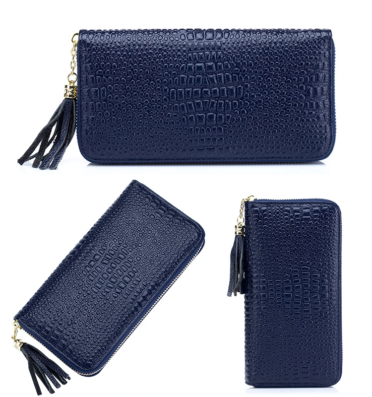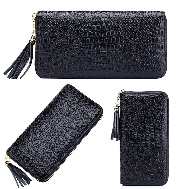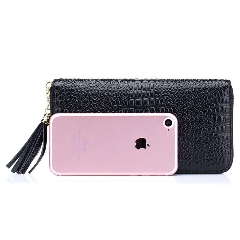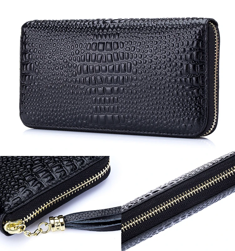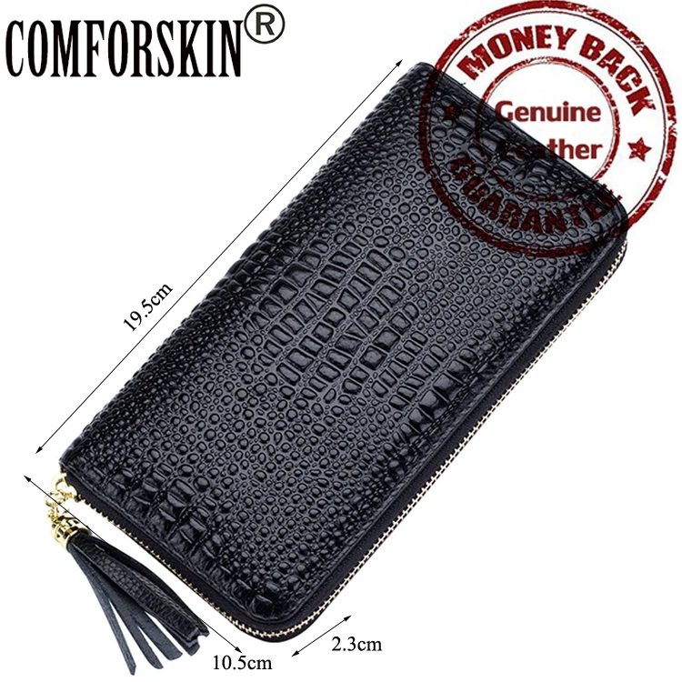 COMFORSKIN Fashion Crocodile Pattern Zipper European and American Luxurious Genuine Leather Women’s Wallets Long Female Purses