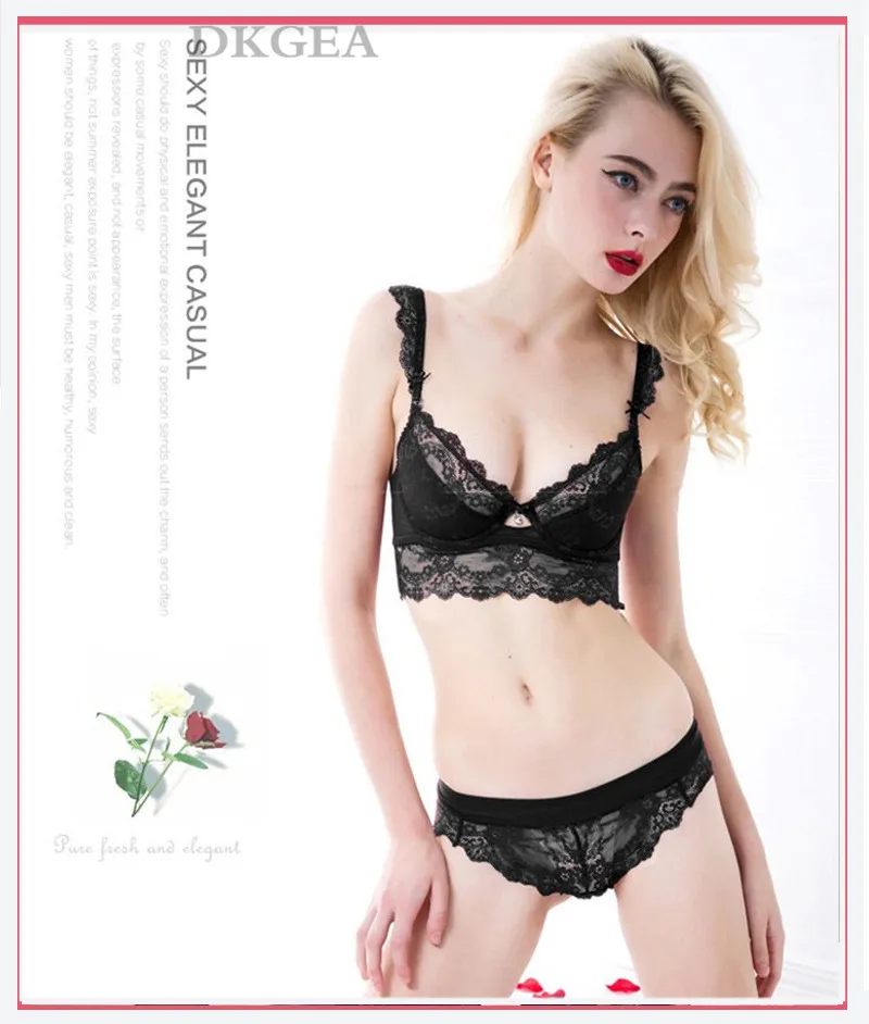 Comfortable Thin Cotton Brassiere Black Push Up Bra Panties Sets Lace Lingerie Black Women Underwear Set Plus Size Sexy Bras