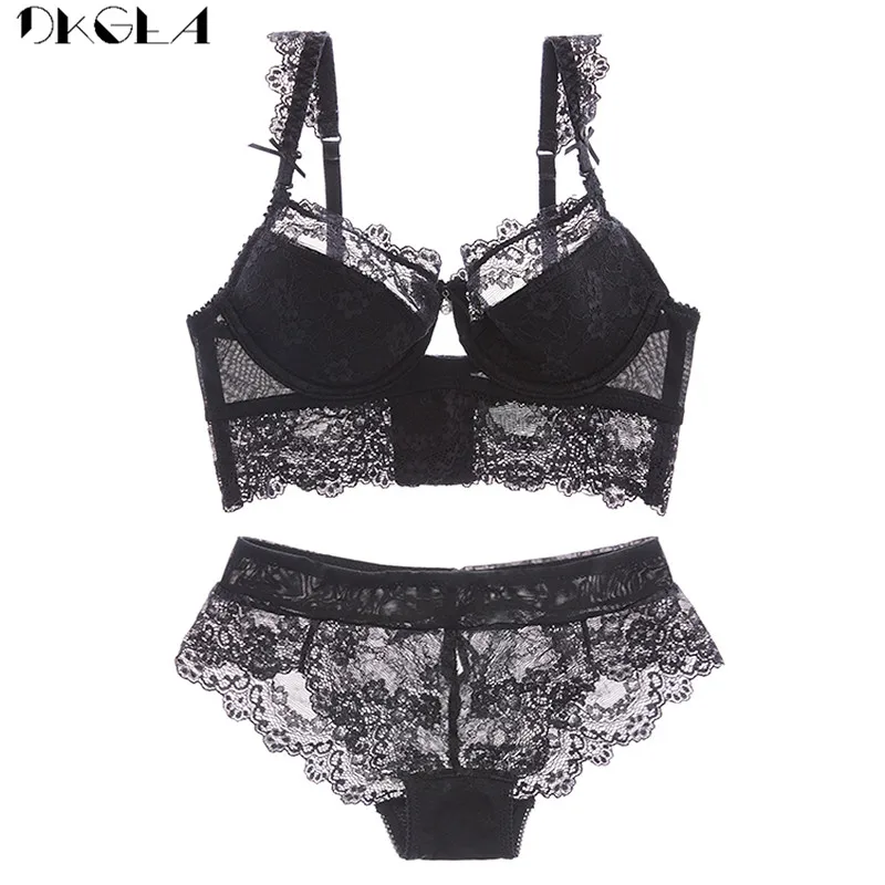 Comfortable Thin Cotton Brassiere Black Push Up Bra Panties Sets Lace Lingerie Black Women Underwear Set Plus Size Sexy Bras