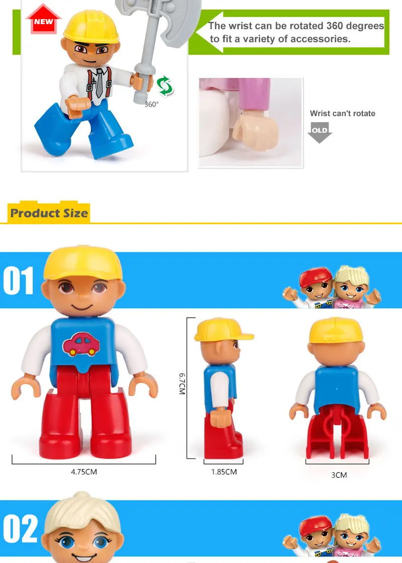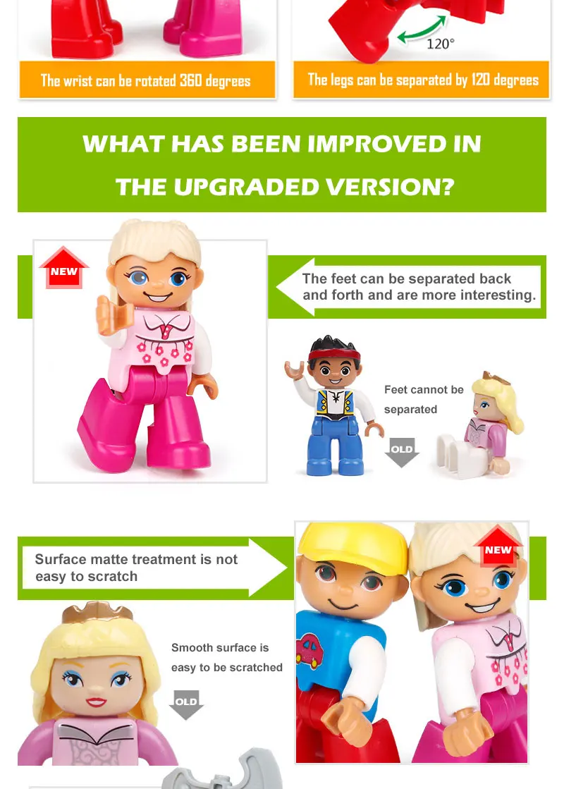 The new upgraded version of the figure doll building blocks toy, feet can be separated by about 120 degrees, the wrist can be rotated 360 degrees, playability is higher, compatible with legoed duplos blocks, improve children’s cognitive ability, children’s educational toys.