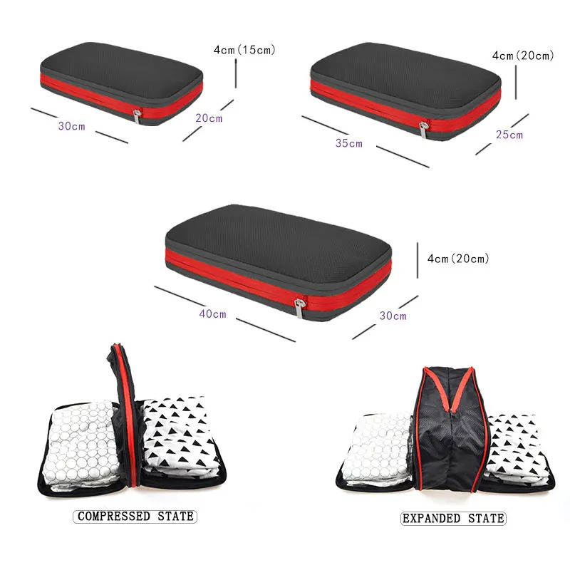 Double Layer Compression Packing Cubes Travel Luggage Organizer Waterproof Packing Cubes 7 Colors Large Medium and Small 3 Sets