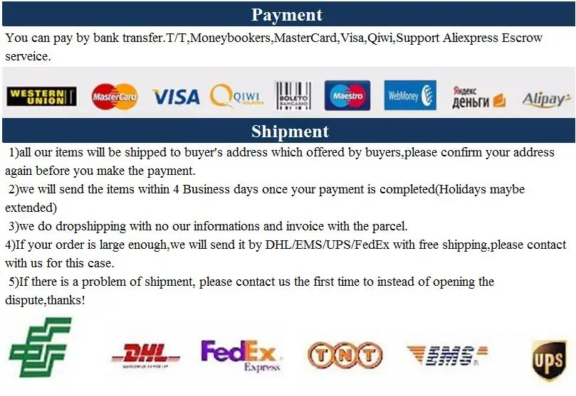 Packages from our warehouse in China will be shipped by ePacket or EMS depending on the weight and size of the product. Packages shipped from our US warehouse are shipped through USPS.