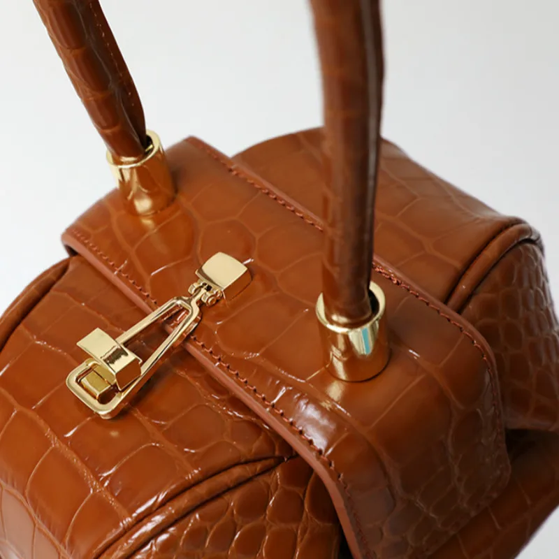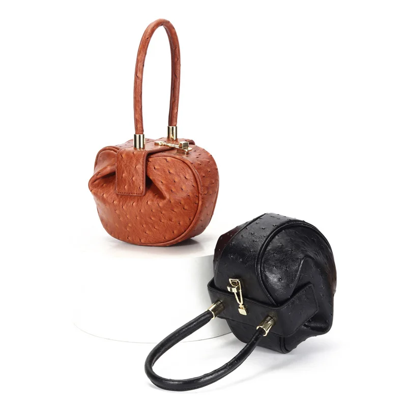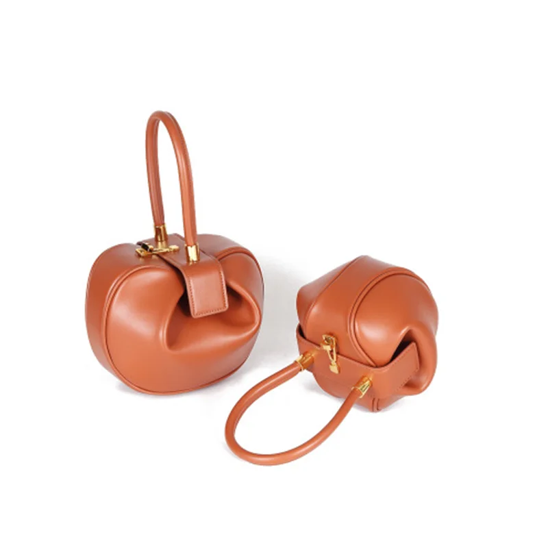 Cow Leather Women Bag Vintage Pillow Box Barrel Round Small Handbags Clutches Evening Wrist Bags Women Fashional