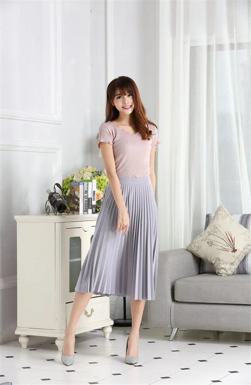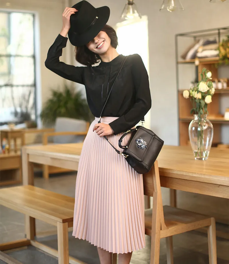 CRRIFLZ Spring Autumn Fashion Women’s High Waist Pleated Solid Color Half Length Elastic Skirt Promotions Lady Black Pink