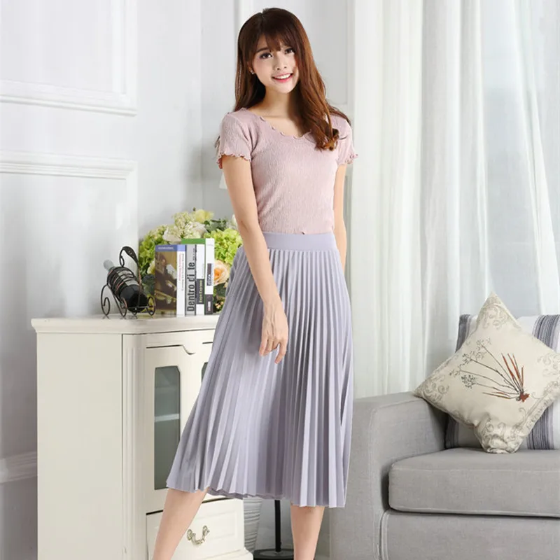 CRRIFLZ Spring Autumn Fashion Women’s High Waist Pleated Solid Color Half Length Elastic Skirt Promotions Lady Black Pink