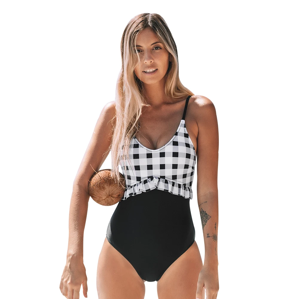 CUPSHE Black and White Gingham Ruffled One-Piece Swimsuit Sexy Cut Out Women Monokini 2020 Girls Beach Bathing Suits Swimwear