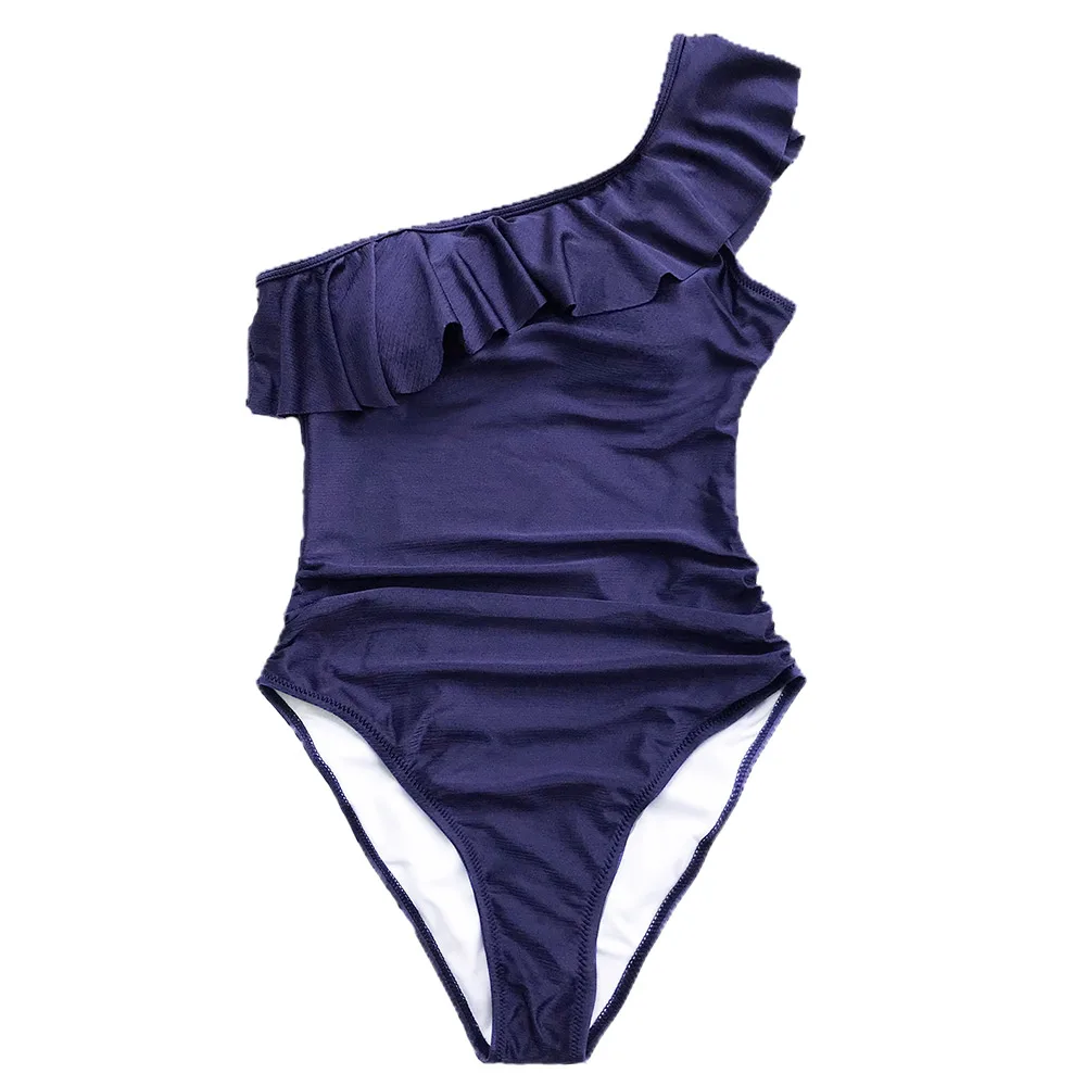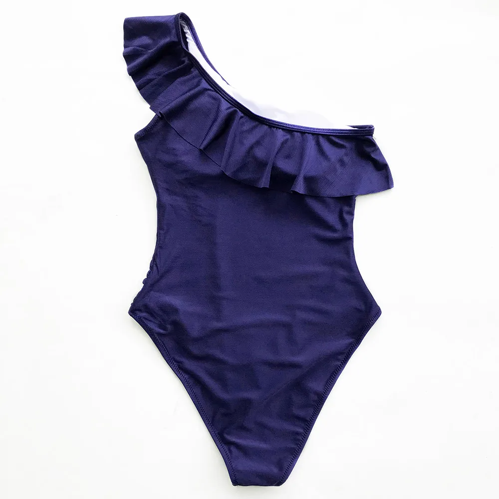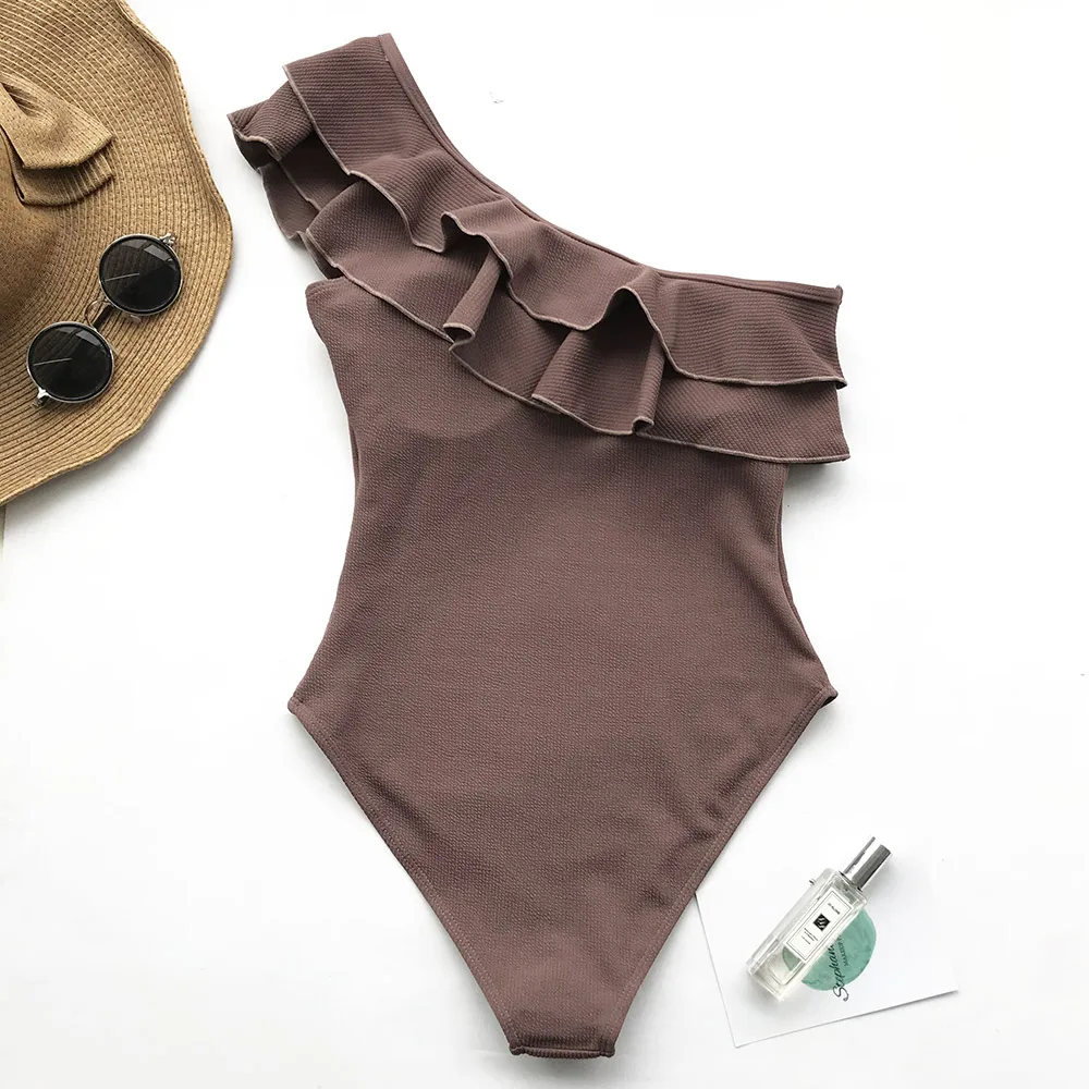 CUPSHE Falbala One-piece Swimsuit Women Brown Ruffle One-shoulder Monokini 2020 Girl Solid Beach Bathing Suit Swimwear