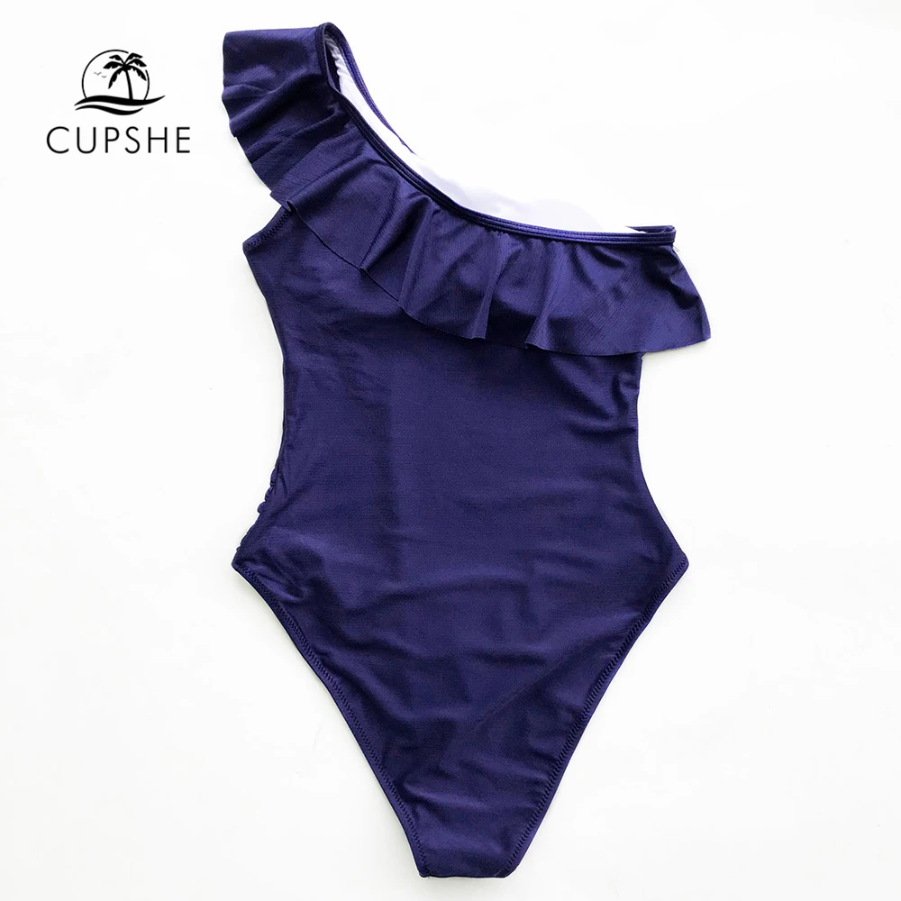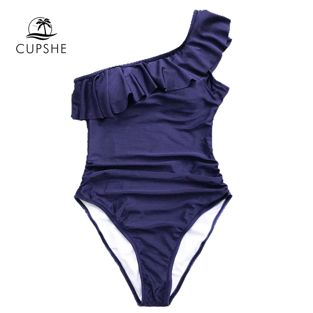 CUPSHE Falbala One-piece Swimsuit Women Brown Ruffle One-shoulder Monokini 2020 Girl Solid Beach Bathing Suit Swimwear