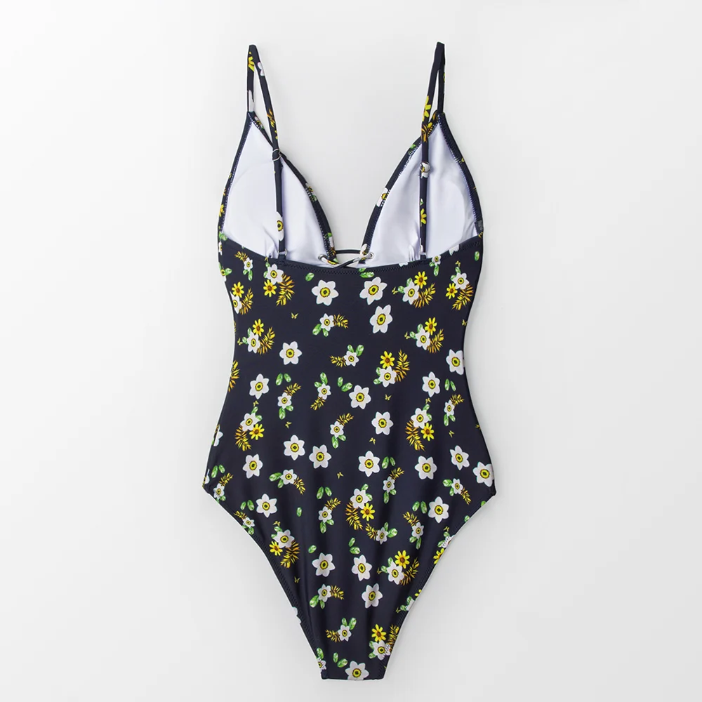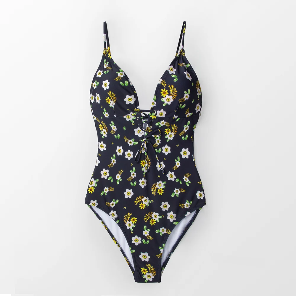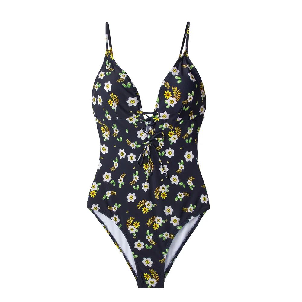 CUPSHE Floral Print Lace-Up One-Piece Swimsuit Women Sexy Push Up Monokini 2020 Girl Boho Beach Bathing Suits Swimwear