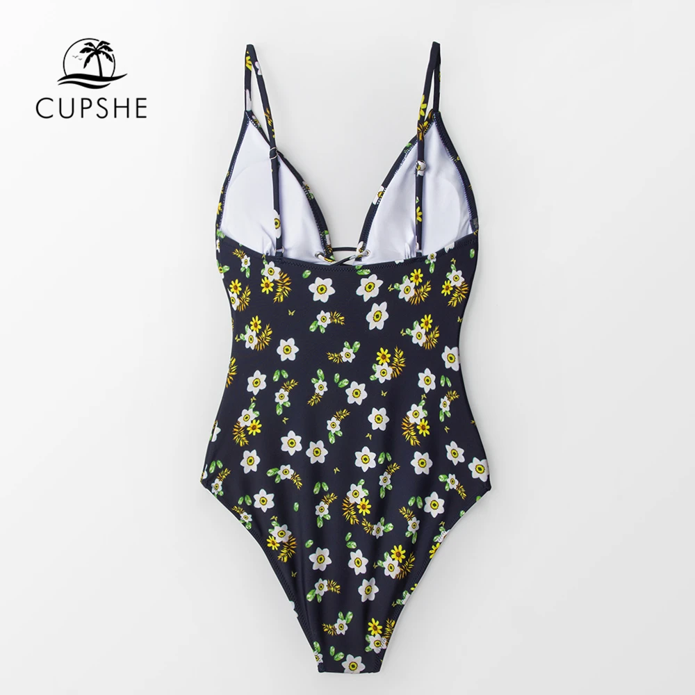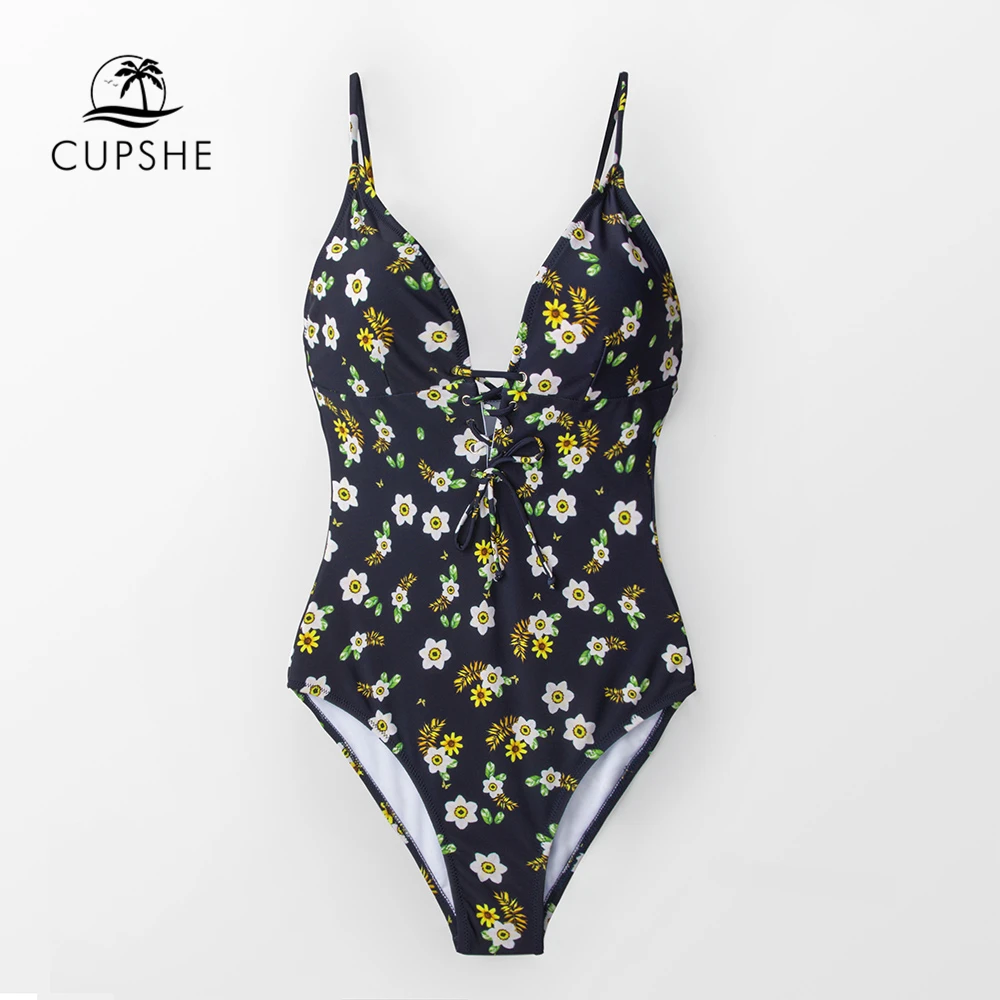 CUPSHE Floral Print Lace-Up One-Piece Swimsuit Women Sexy Push Up Monokini 2020 Girl Boho Beach Bathing Suits Swimwear
