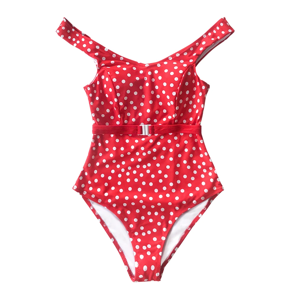 CUPSHE Red Polka Dot Belted One-Piece Swimsuit Women Sexy Backless Cut Out Monokini 2020 Girls Beach Bathing Suit Swimwear
