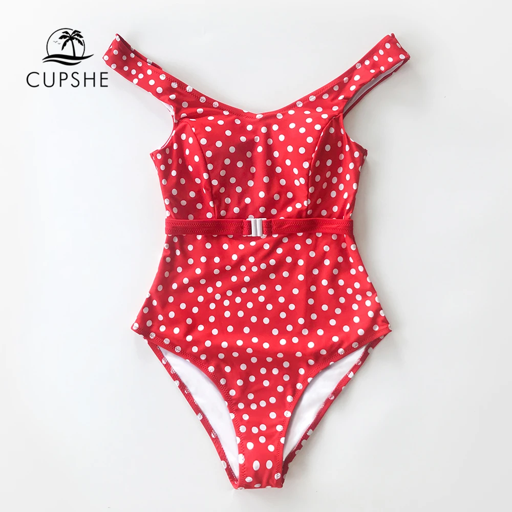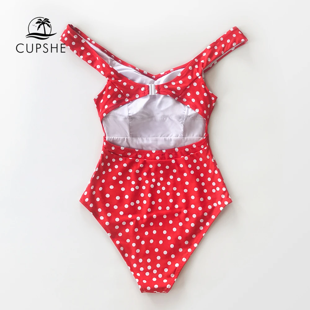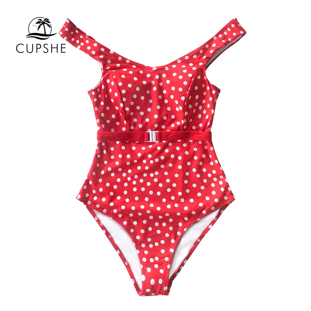CUPSHE Red Polka Dot Belted One-Piece Swimsuit Women Sexy Backless Cut Out Monokini 2020 Girls Beach Bathing Suit Swimwear