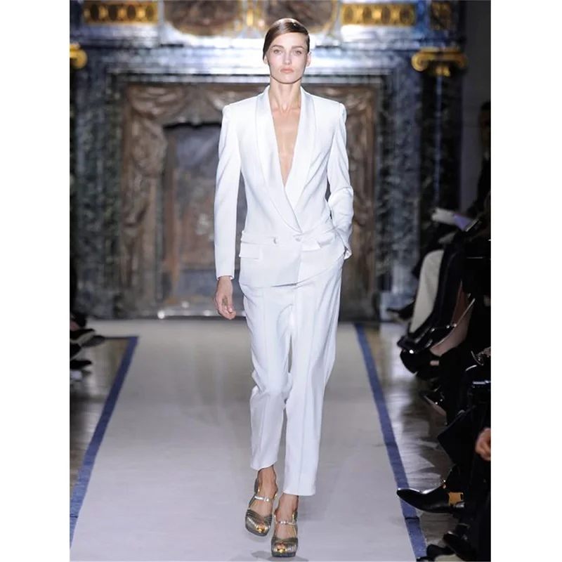 Custom white trouser suit double breasted women business suits formal office suit work 2 piece blazer set lady trouser suit
