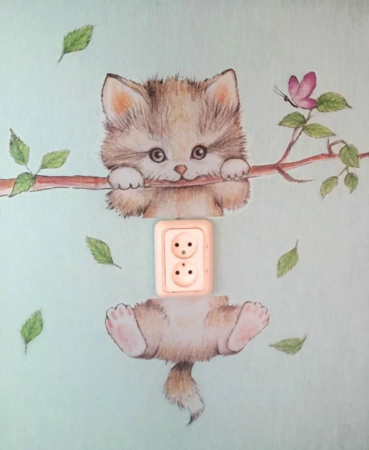 cute cat butterfly tree branch wall stickers for kids rooms home decoration cartoon animal wall decals diy posters pvc mural art