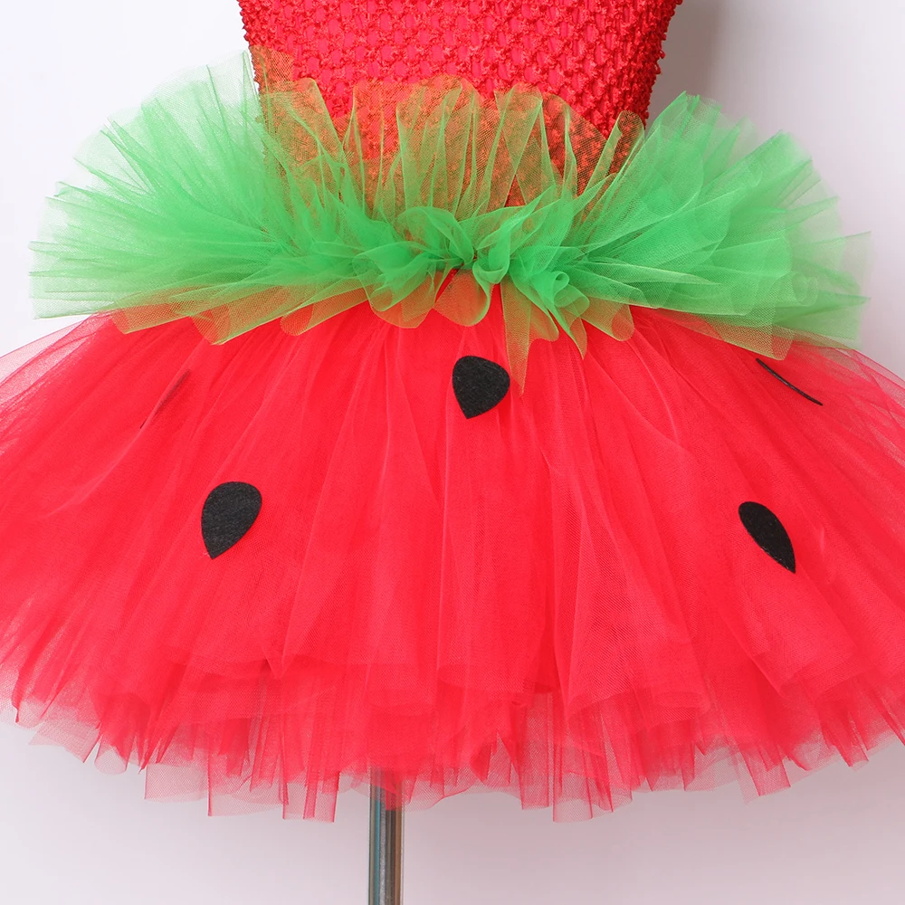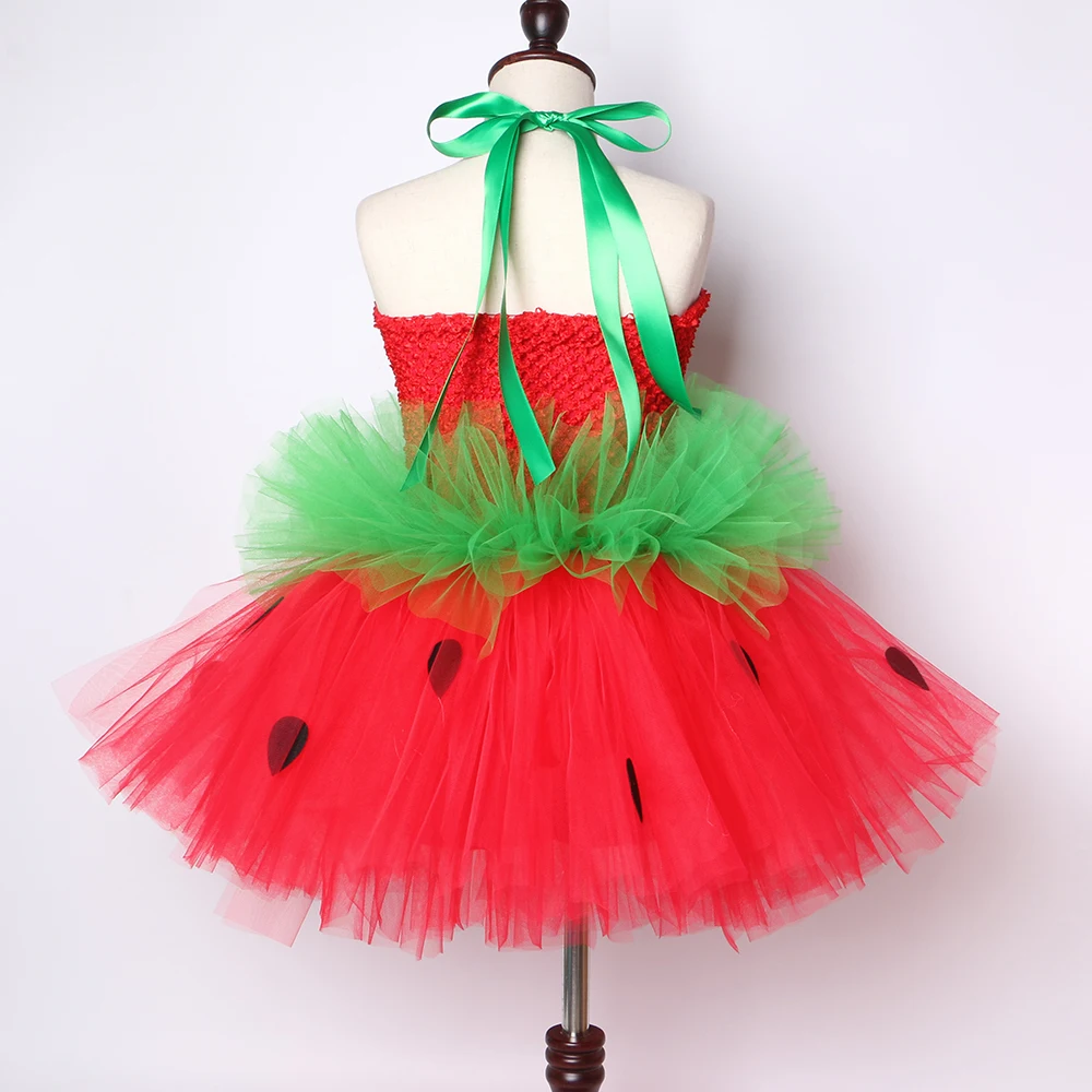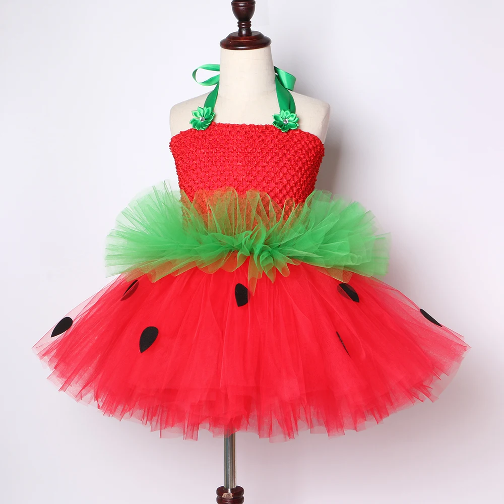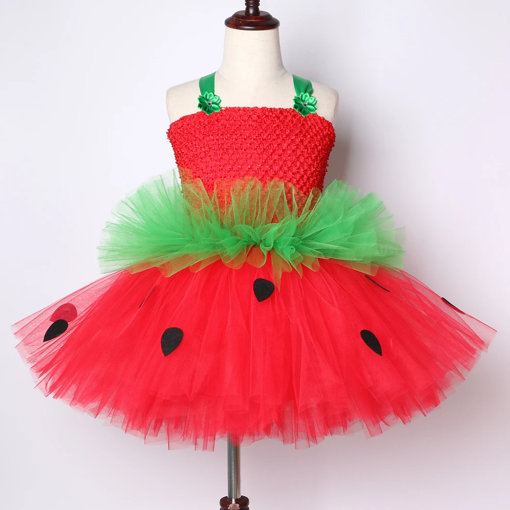 Cute Strawberry Tutu Dress Red Green Tulle Flowers Princess Girls Birthday Party Dress Children Kids Christmas Halloween Costume