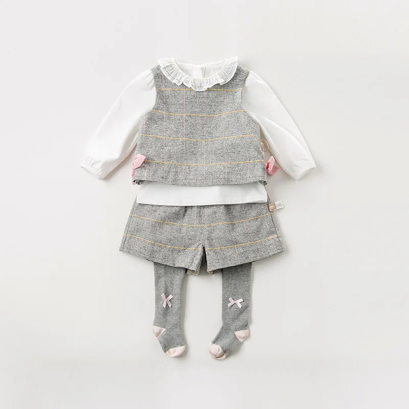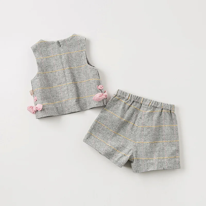 Autumn baby girls fashion bow plaid clothing sets kids cute long sleeve sets children 2 pcs suit