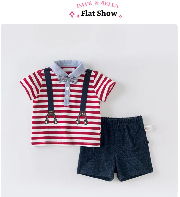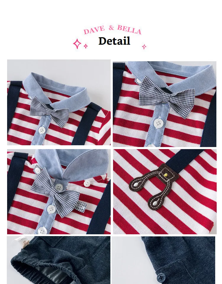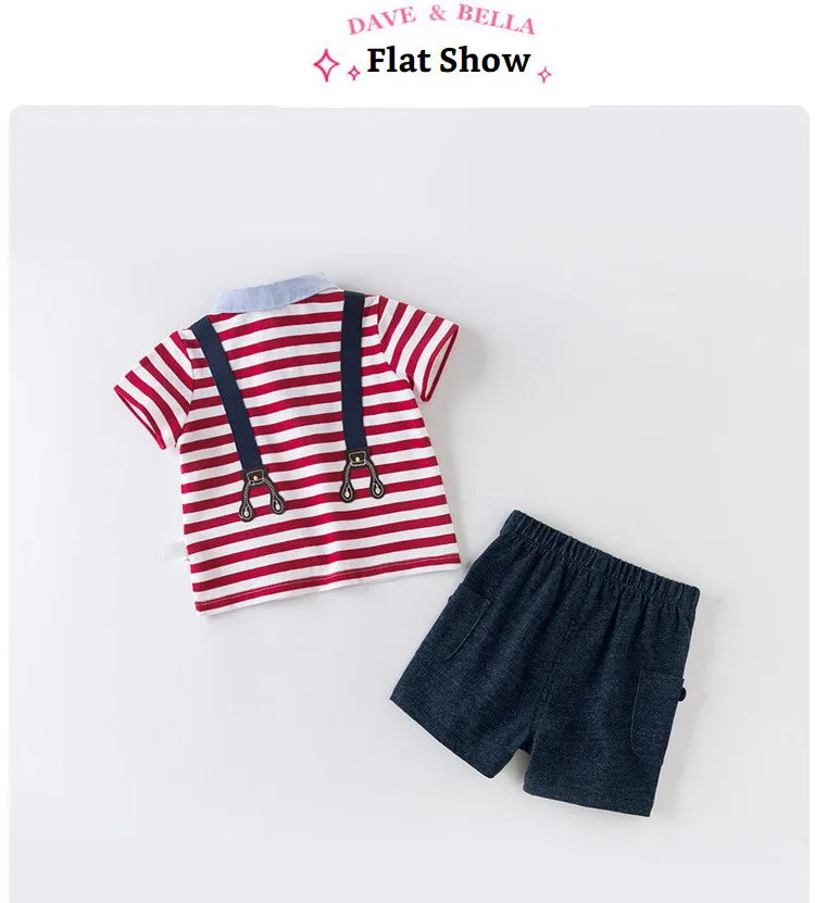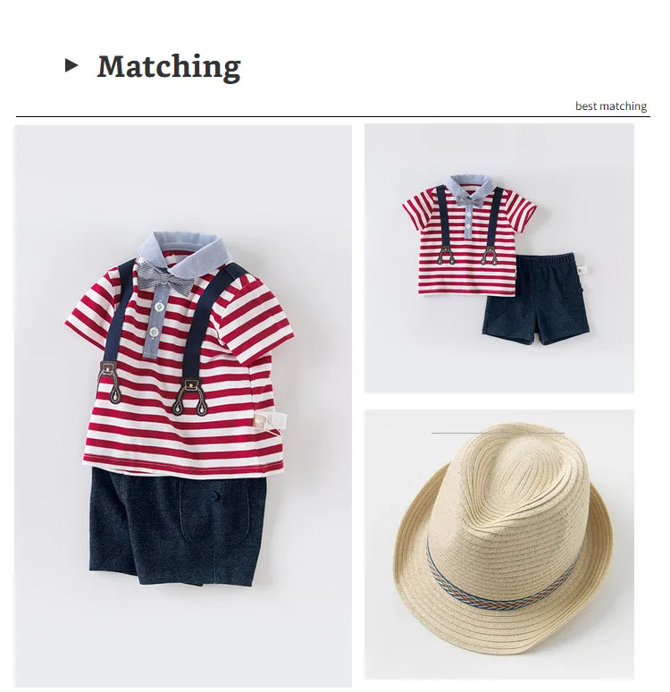 Summer baby boys fashion bow striped clothing sets kids handsome short sleeve sets children 2 pcs suit