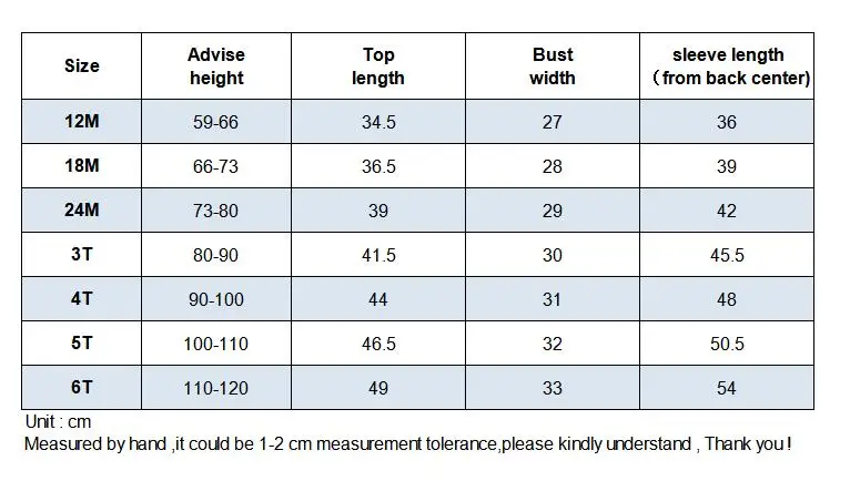 Kid SizeBody Length(cm)Sleeve Length(cm)Height Range(cm)Chest Width(cm)Size