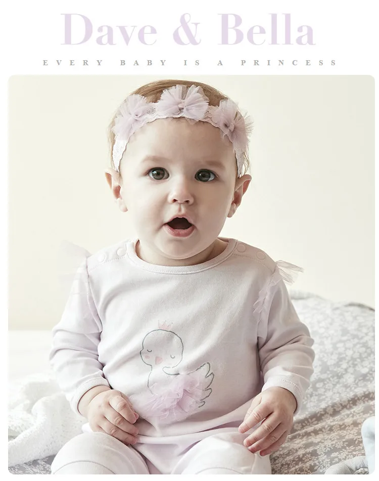 Spring new born baby girls fashion cartoon jumpsuits infant toddler clothes children romper with headband
