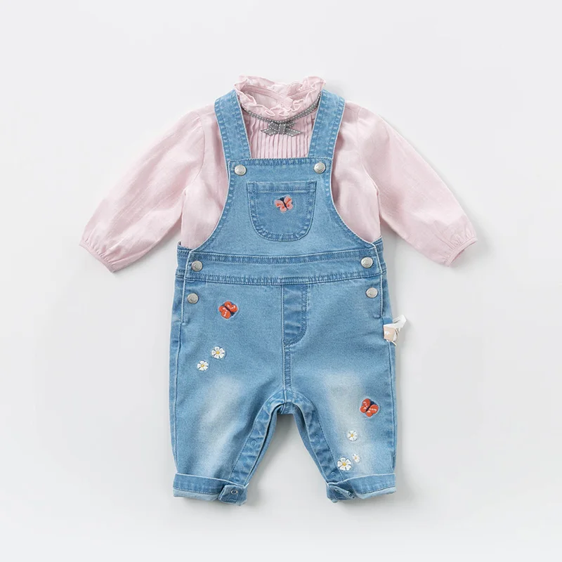 Spring baby girls fashion floral strap pants children full length kids pants infant