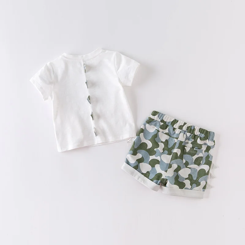 Summer baby boys fashion cartoon print clothing sets kids handsome short sleeve sets children 2 pcs suit