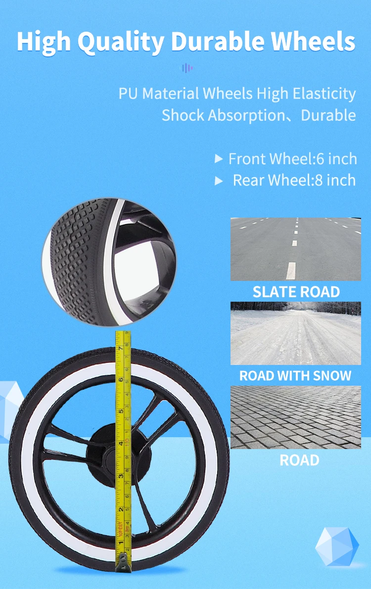 Wheels Size:front wheels=6inch,rear wheel=8inch.
