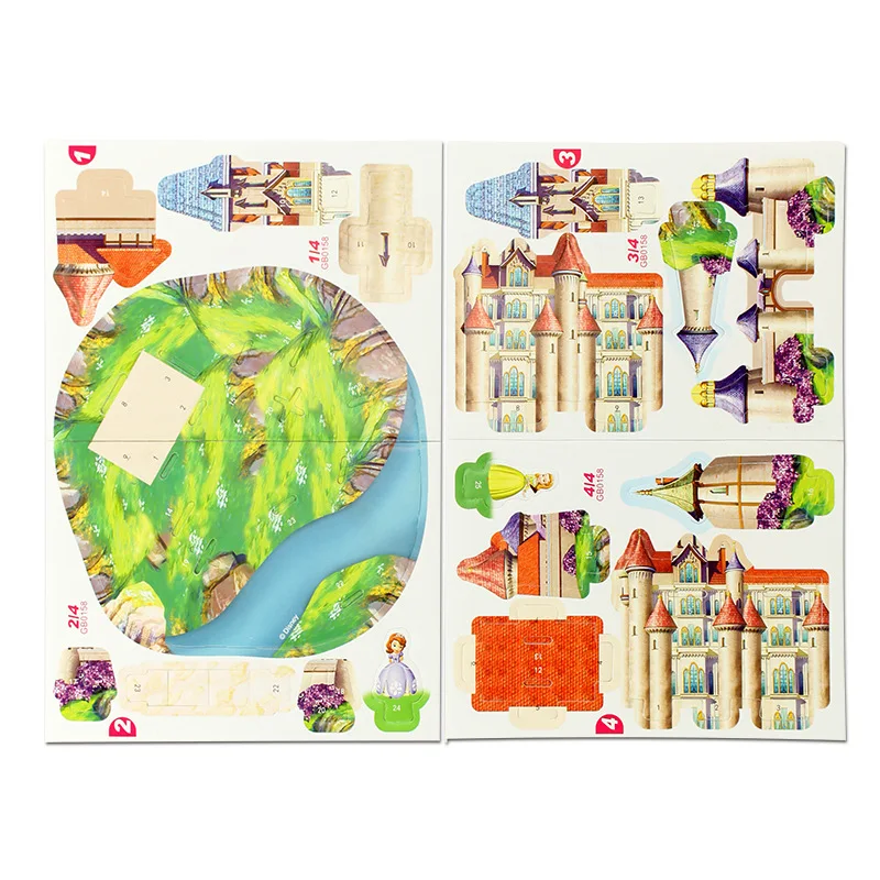 Disney Cartoon Frozen 3D Puzzle Child Puzzle Paper Puzzle Castle Pattern Plug-in puzzle