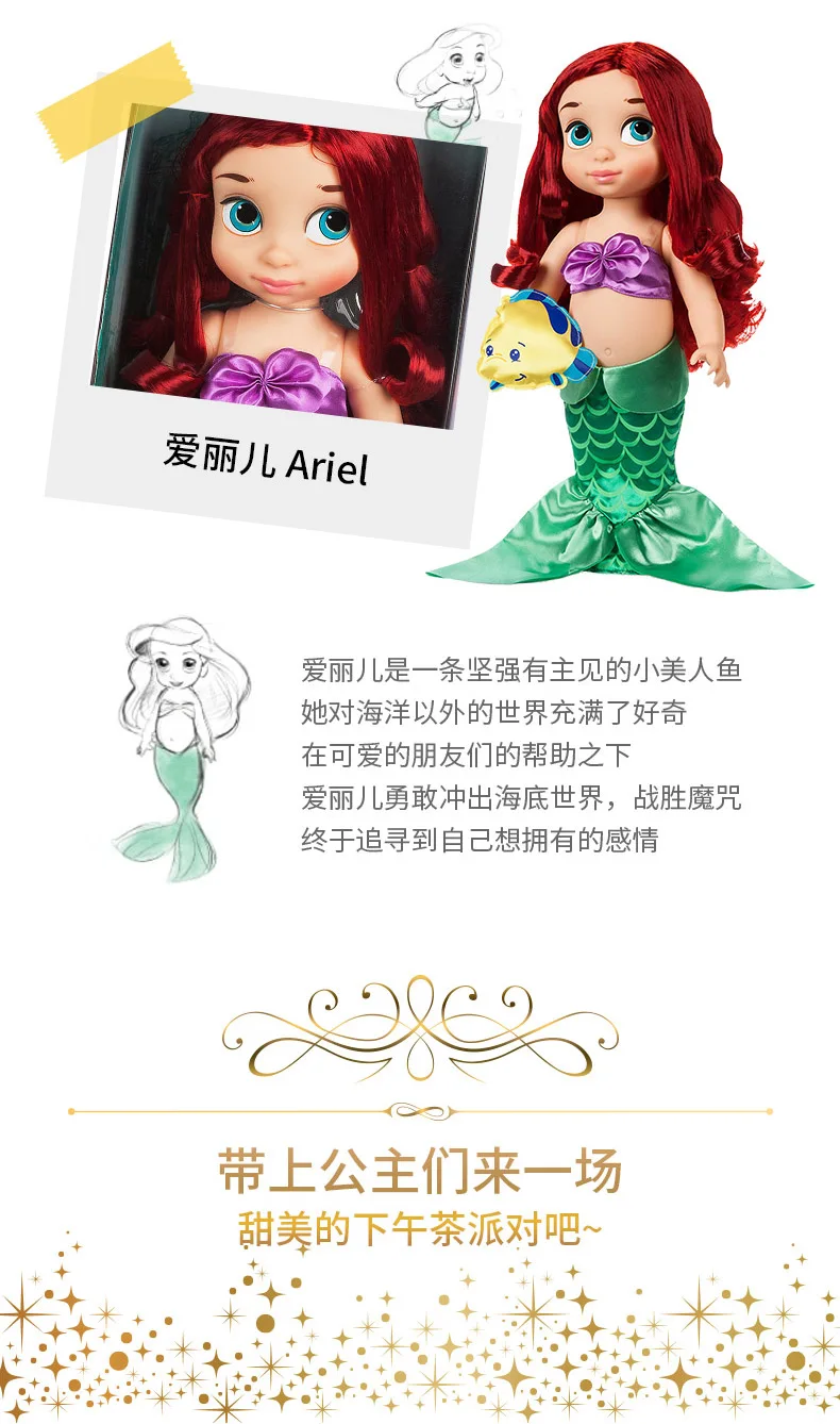 Disney Cartoon Princess Doll Kawaii Ariel Elsa Anna Belle action figure model Toys Birthday Christmas Gifts toys For children