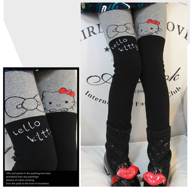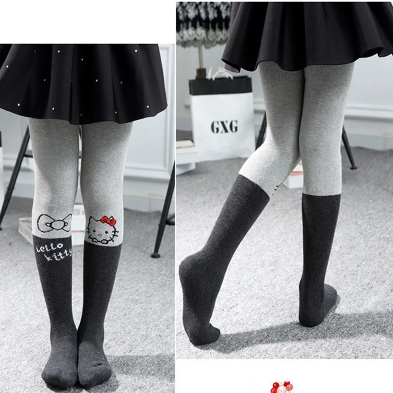 Disney Pantyhose Girl Hello Kitty Cartoon Cotton Tights For Baby Girls Cute Pink Grey Knitted Stockings Girl Suitable for 2-10Y