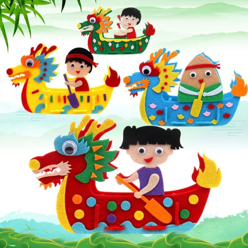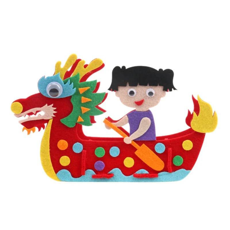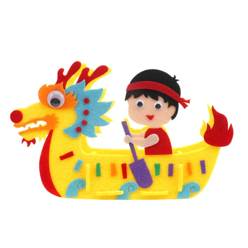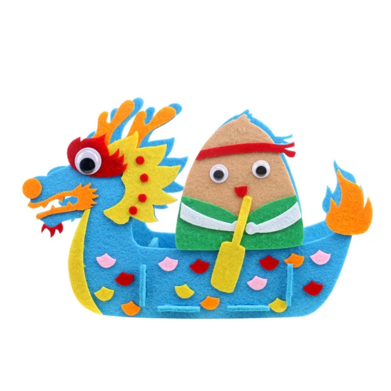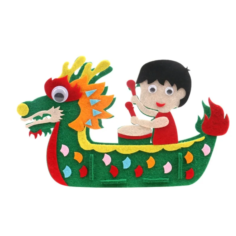 DIY Kids Manual Dragon Boat 3D Model Children handmade Boat Race Toys Children non Woven Clothing Preschool Arts Educational Toy