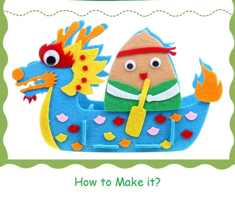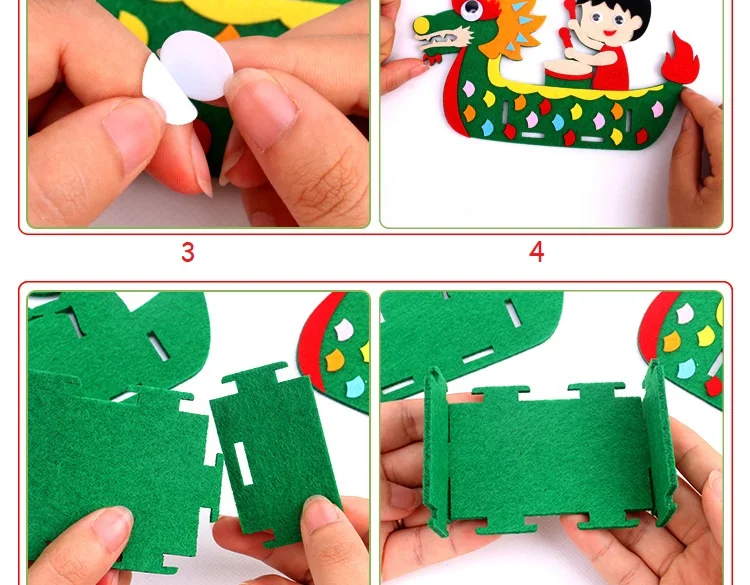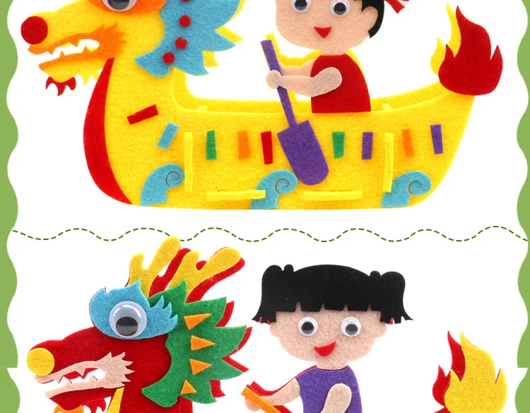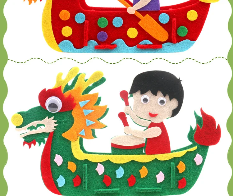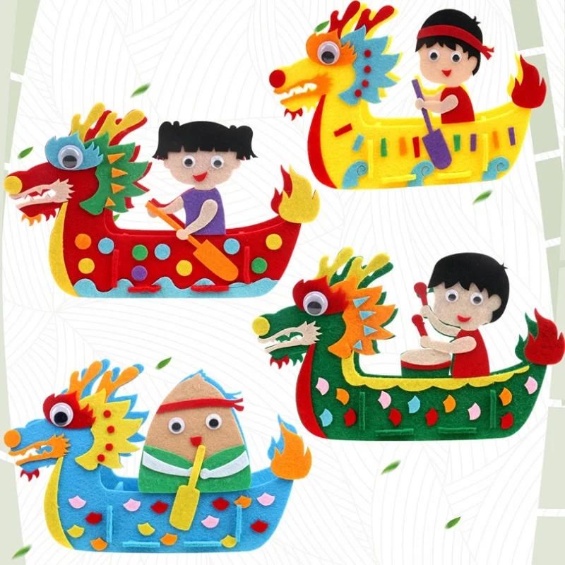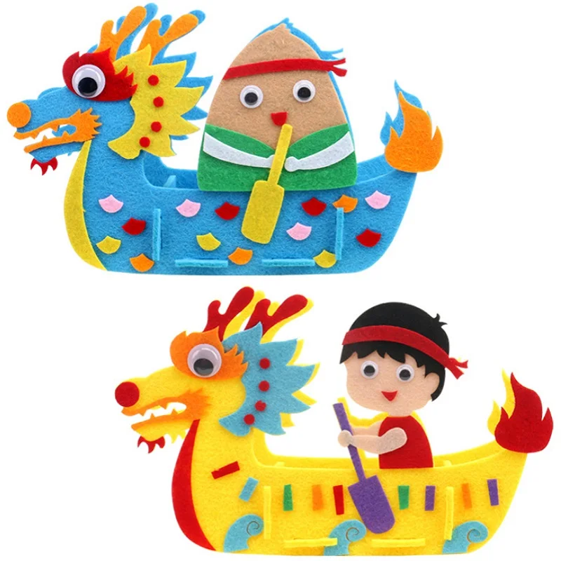 DIY Kids Manual Dragon Boat 3D Model Children handmade Boat Race Toys Children non Woven Clothing Preschool Arts Educational Toy