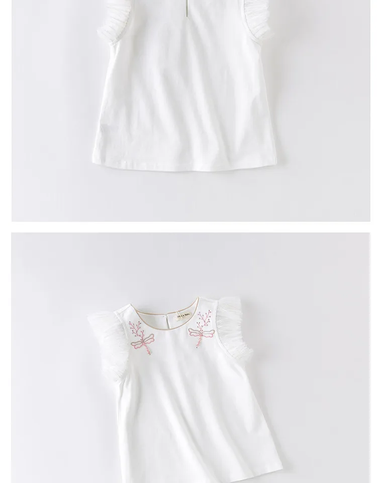 Summer 5Y-13Y kids clothes children fashion butterfly sleeveless T-shirt girls high quality fashion tees