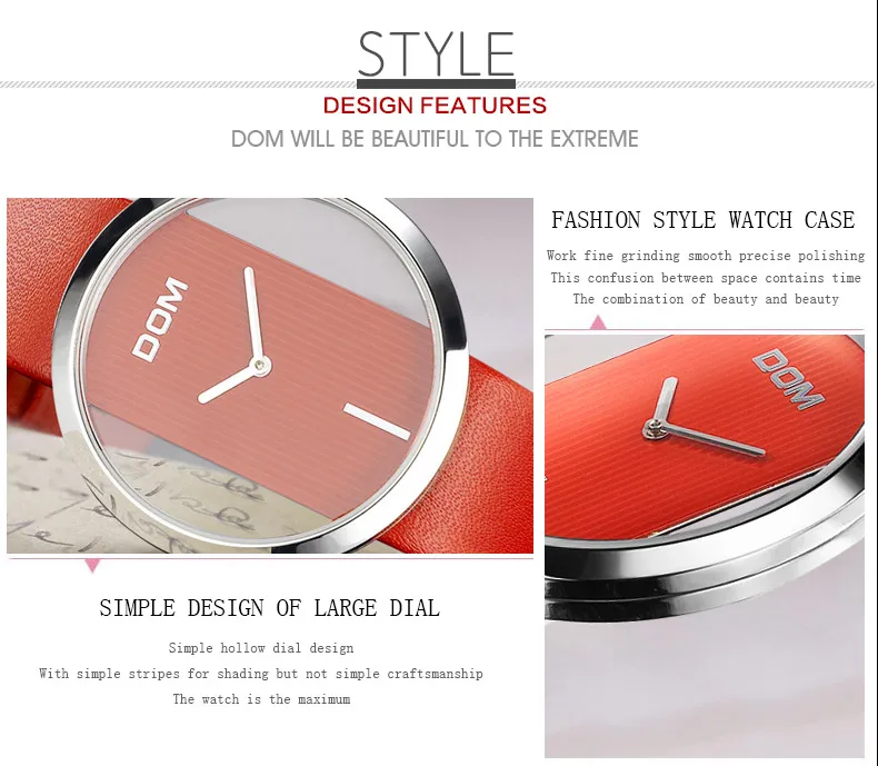 DOM Watch Women luxury Fashion Casual 30 m waterproof quartz watches genuine leather strap sport Ladies elegant wrist watch girl